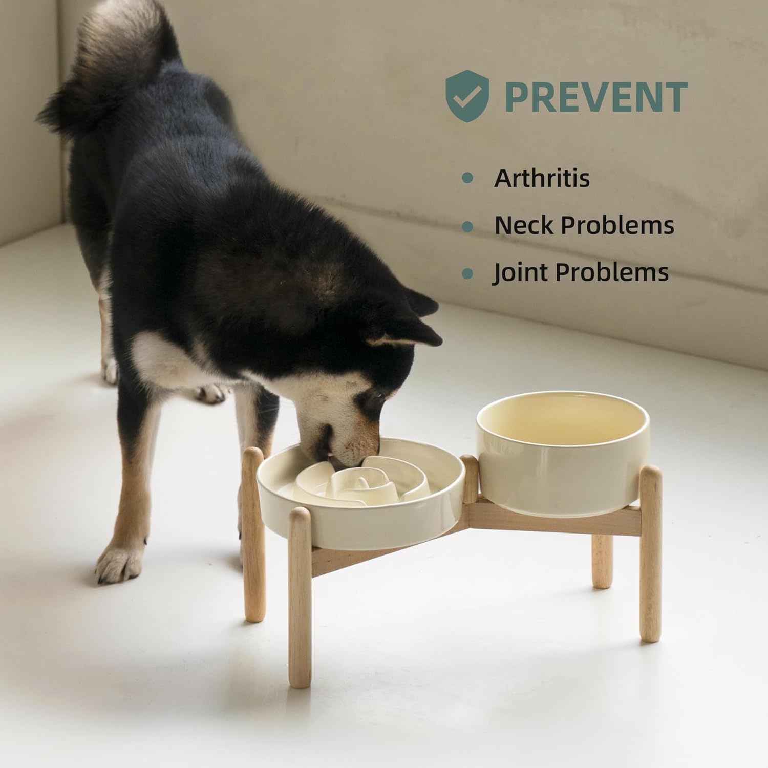 - Rasied Wooden Stand: Raised ceramic dog bowls provide dogs with correct eating posture,improved reducing bloating and neck strain with dogs,and prevents indigestion problem.