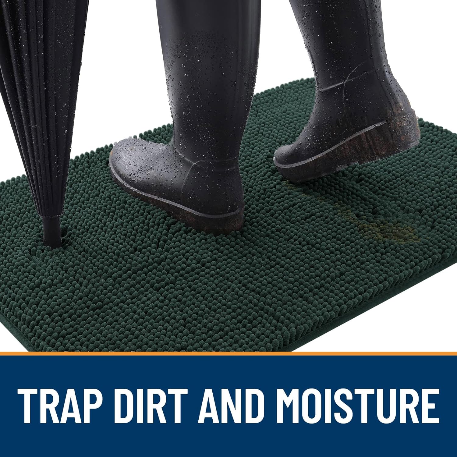 OLANLY Dog Door Mat for Muddy Paws 70x32, Absorbs Moisture and Dirt, Absorbent Non-Slip Washable Doormat, Quick Dry Chenille Mud Mat, Entry Indoor Entryway Carpet for Inside Floor, Blackish Green