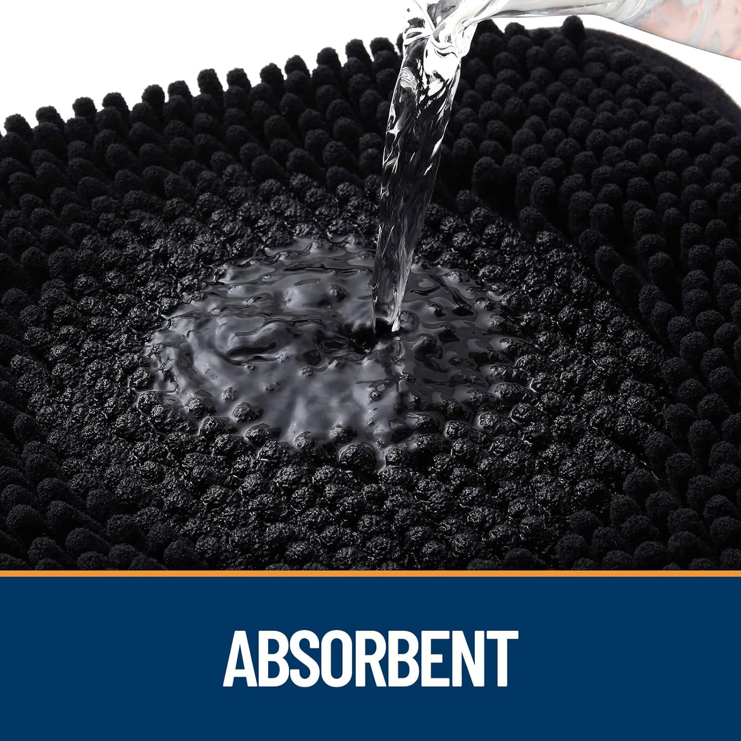 OLANLY Dog Door Mat for Muddy Paws 34x21, Absorbs Moisture and Dirt, Absorbent Non-Slip Washable Doormat, Quick Dry Chenille Mud Mat for Dogs, Entry Indoor Entryway Carpet for Inside Floor, Black