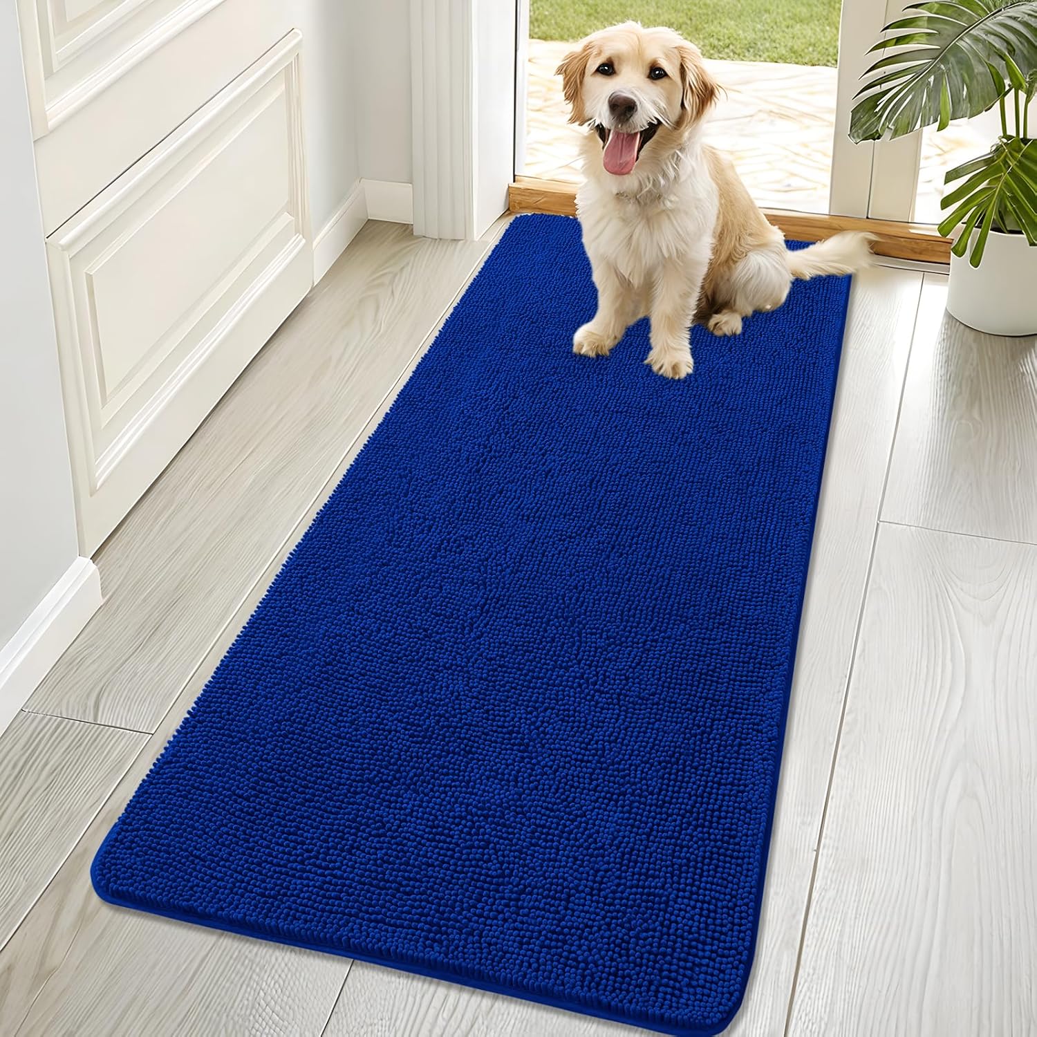 OLANLY Dog Door Mat for Muddy Paws 70x32, Absorbs Moisture and Dirt, Absorbent Non-Slip Washable Doormat, Quick Dry Chenille Mud Mat for Dogs, Entry Indoor Entryway Carpet for Inside Floor, Royal Blue
