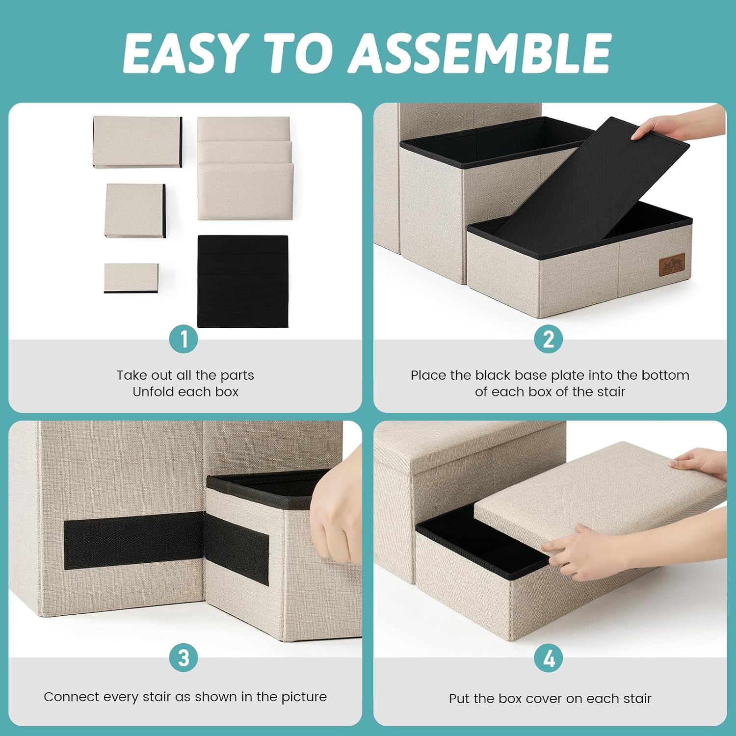 • Easy Assembly & Portability: These dog stairs come with a simple step-by-step assembly guide and a linking system for easy setup. They can also be conveniently folded for storage when not in use.
