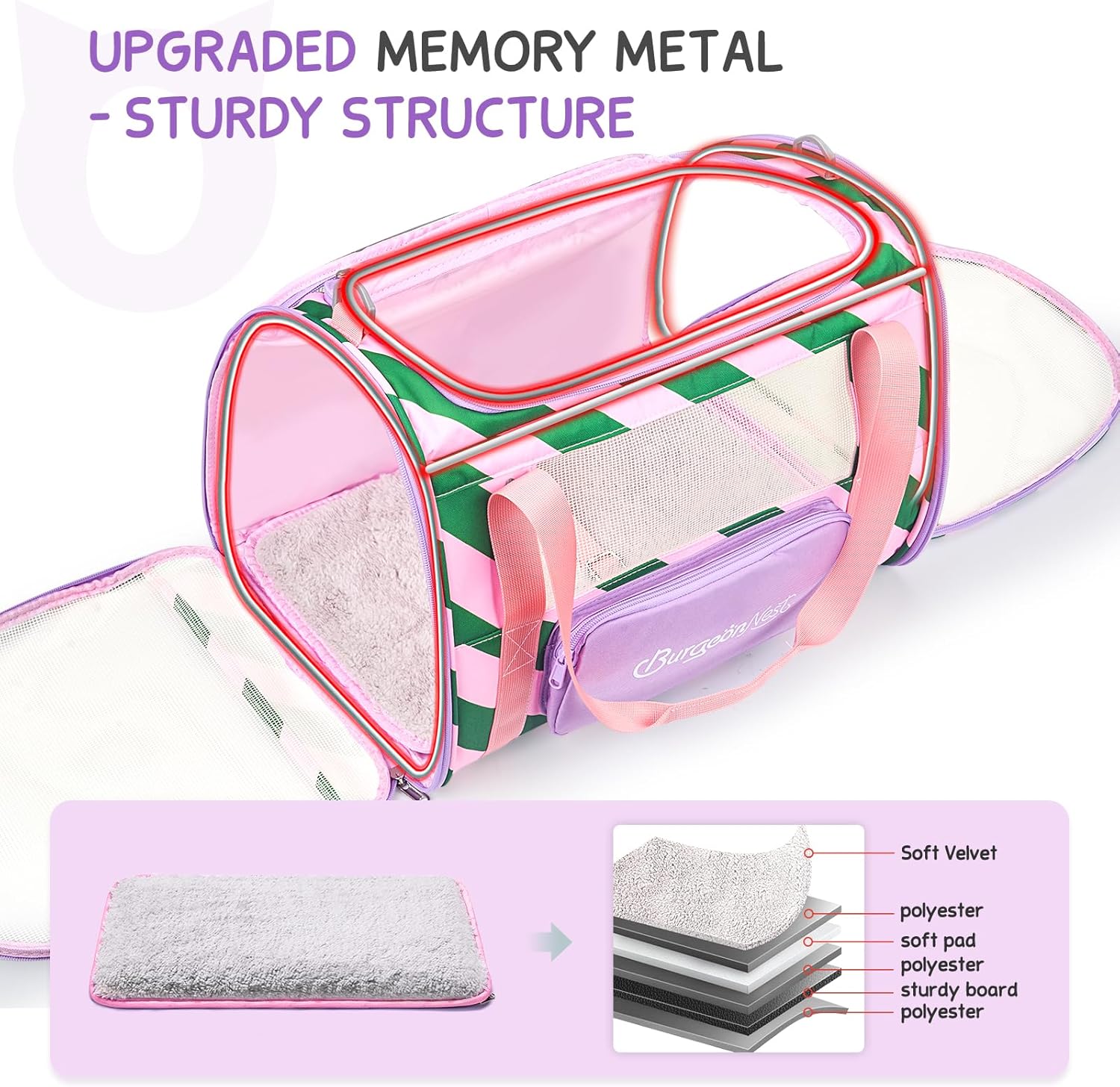 • Stable & Safe Frame: With upgraded memory metal for sturdy frame, this cat carrier for 2 cats does not collapse. Made of breathable fabric, BurgeonNest cat carrier has 3 doors to open, it is more convenient to put your dog cat in or out. Plush cushion with sturdy bottom inserts ensures comfortable environment for pets.