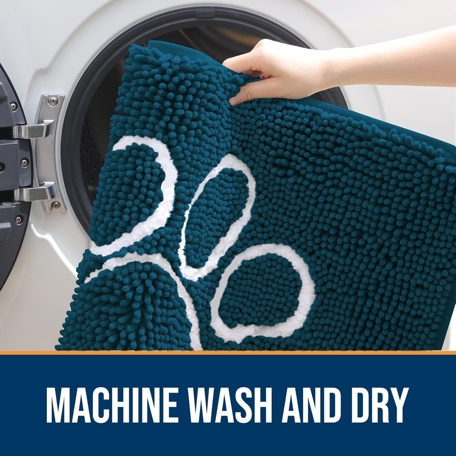 OLANLY Door Mat for Muddy Dog Paws 30x20, Absorbent Chenille Mud Doormat with Paw Print Design, Non-Slip Washable Doormat for Indoor Entryway, Quick-Dry Pet Bed Mats for Dirty Dogs, Atlantic Blue