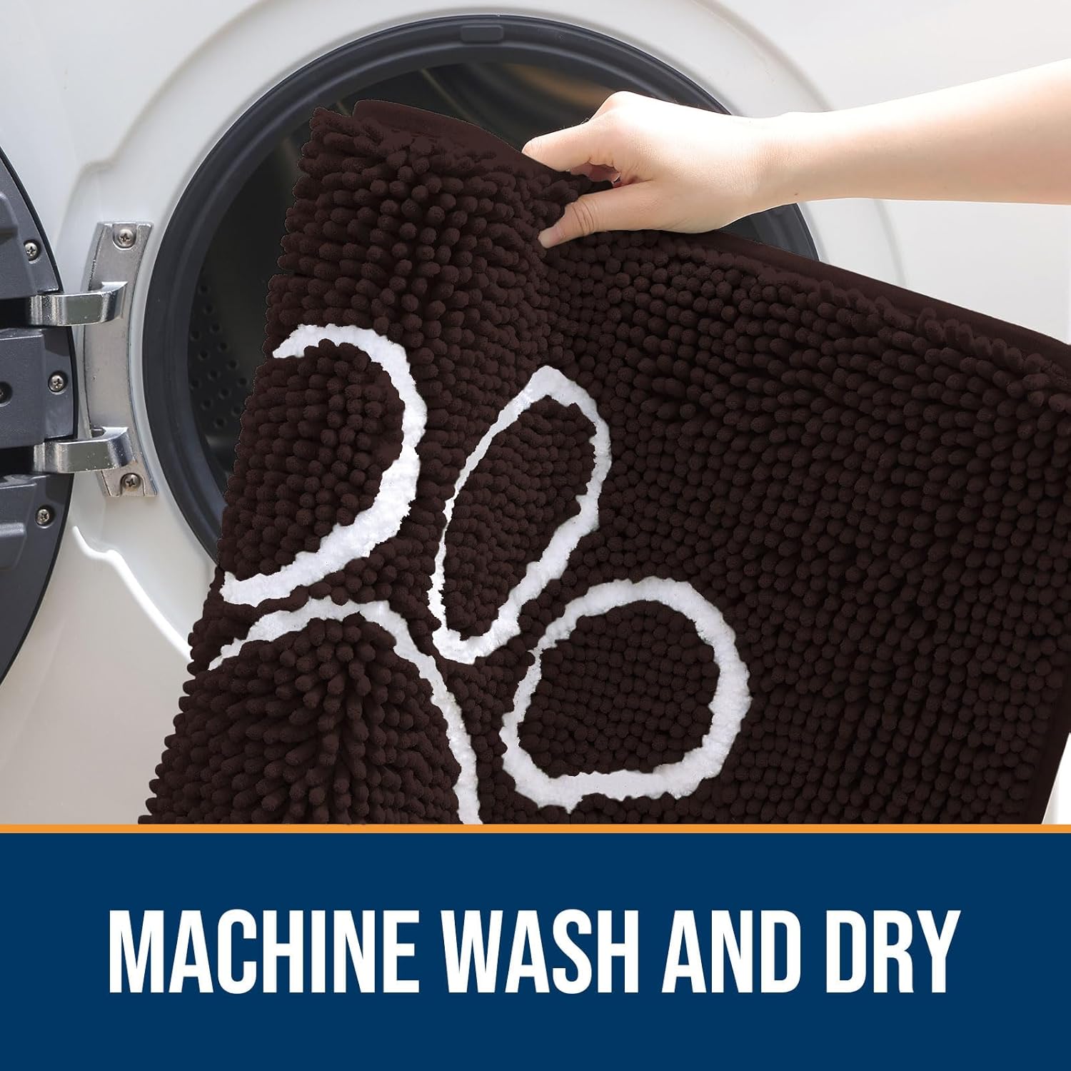 OLANLY Door Mat for Muddy Dog Paws 70x24, Ultra Absorbent Chenille Mud Doormat with Paw Print Design, Non-Slip Washable Doormat for Indoor Entryway, Quick-Dry Pet Bed Mats for Dirty Dogs, Brown