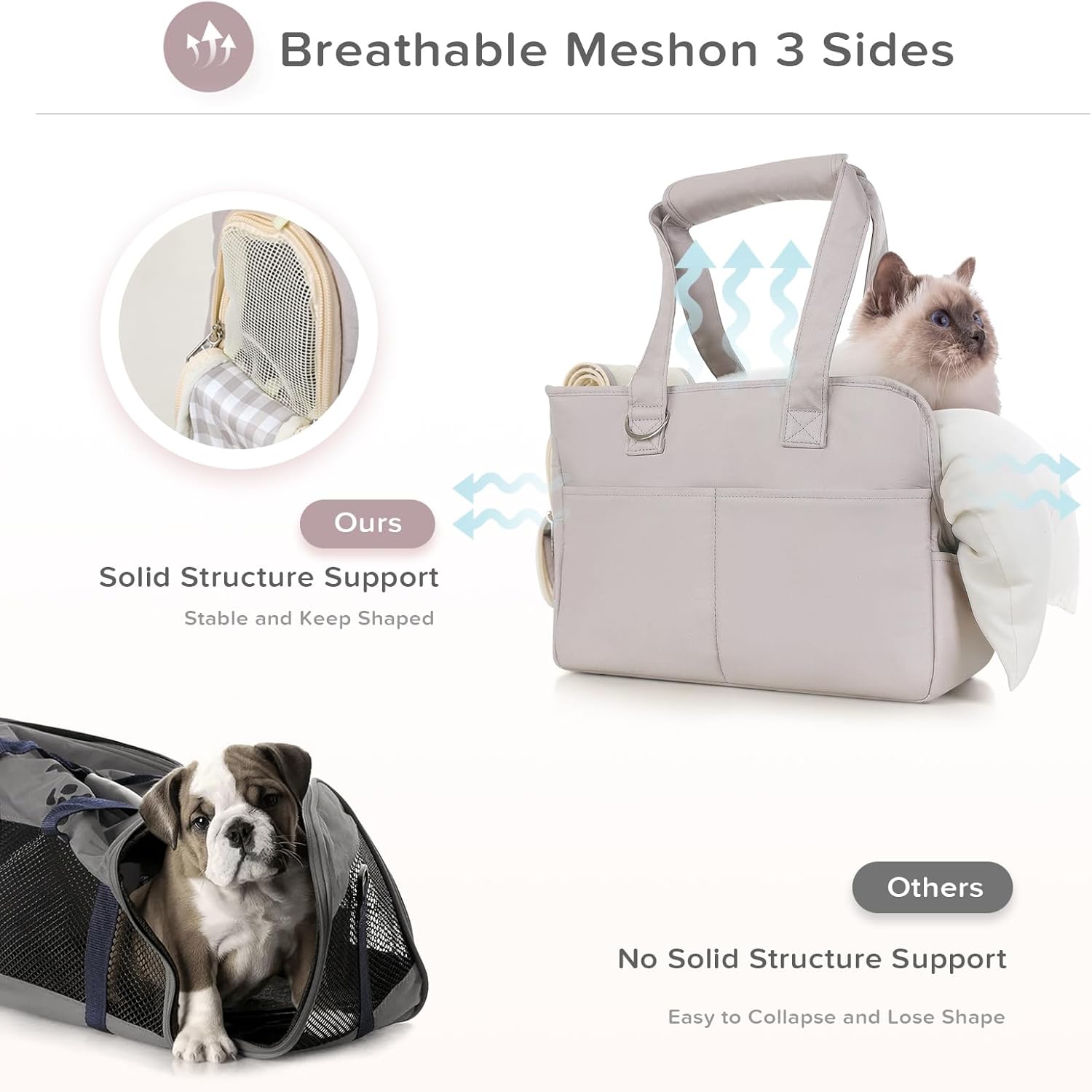 • Breathable & Secure: The mesh design on the top and sides ensures excellent ventilation, allowing your pet to observe their surroundings and feel less anxious, resulting in a more comfortable travel experience. It provides reliable protection for your pet, no matter when or where you use it.