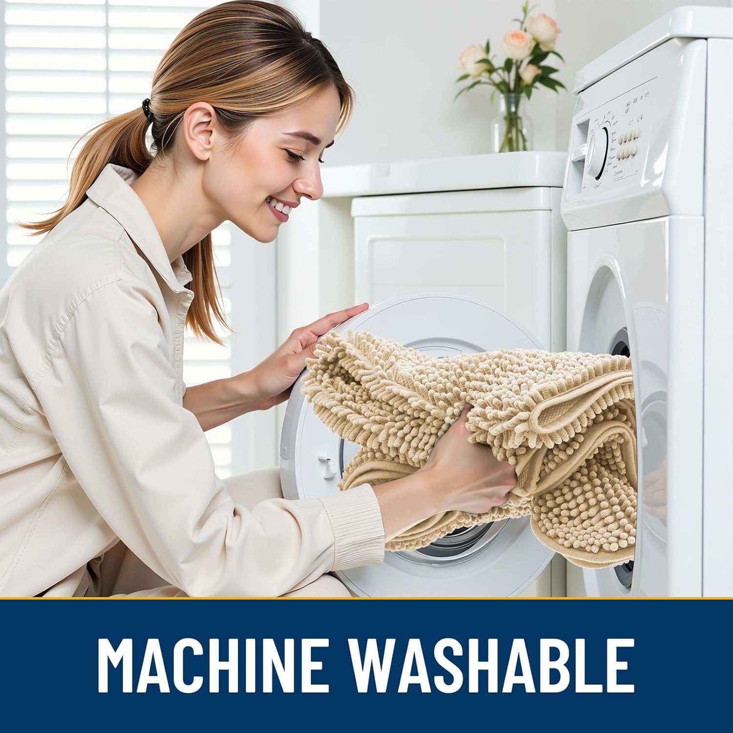 Smiry Dog Door Mat for Muddy Paws 48x30, Absorbs Moisture and Dirt Doormat, Non-Slip Washable Quick Dry Chenille Front Door Mat Indoor Entrance, Entryway Carpet for Inside Floor, Beige