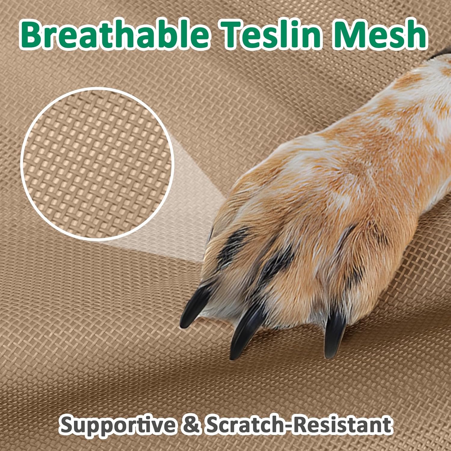 • BREATHABLE TESLIN MESH: This outdoor dog bed comes with breathable and durable Teslin mesh, provides airflow and firm support to relieve joint pressure. Our dog cot bed is suitable for dogs of all life stages, from puppy to the senior