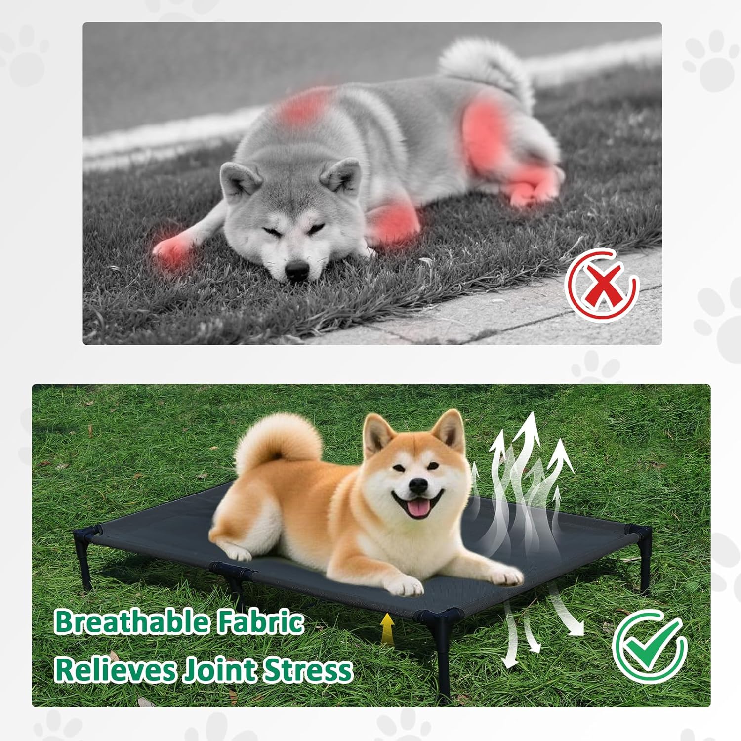 - BREATHABLE TESLIN MESH: This outdoor dog bed comes with breathable and durable Teslin mesh, provides airflow and firm support to relieve joint pressure. Our dog cot bed is suitable for dogs of all life stages, from puppy to the senior