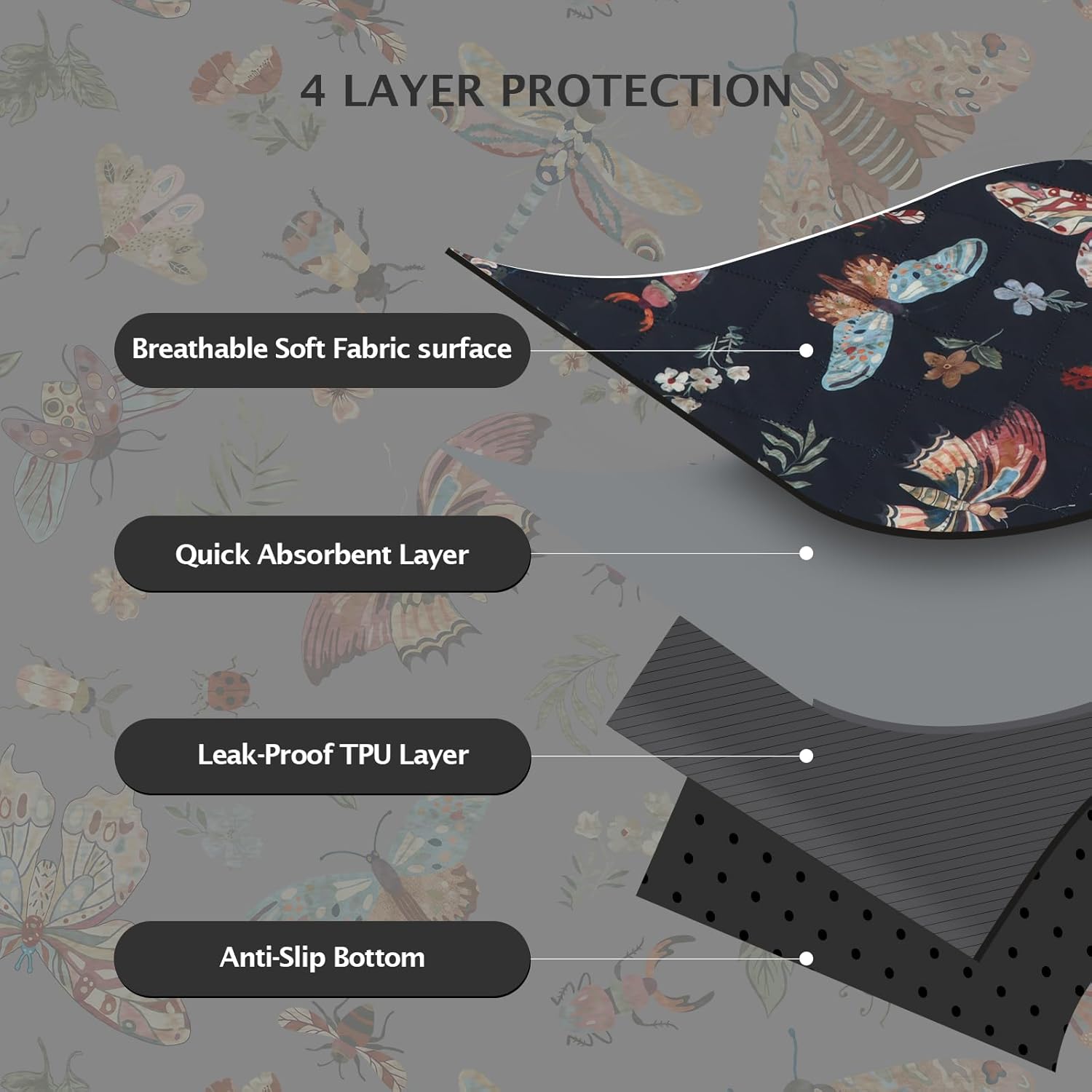IEUUMLER Washable Pee Pads for Dogs, 1 Pack Insect Pattern Reusable Waterproof Puppy Potty Pads, Non-Slip Absorbent Pet Training Pads for Playpen Crate Bed EU014