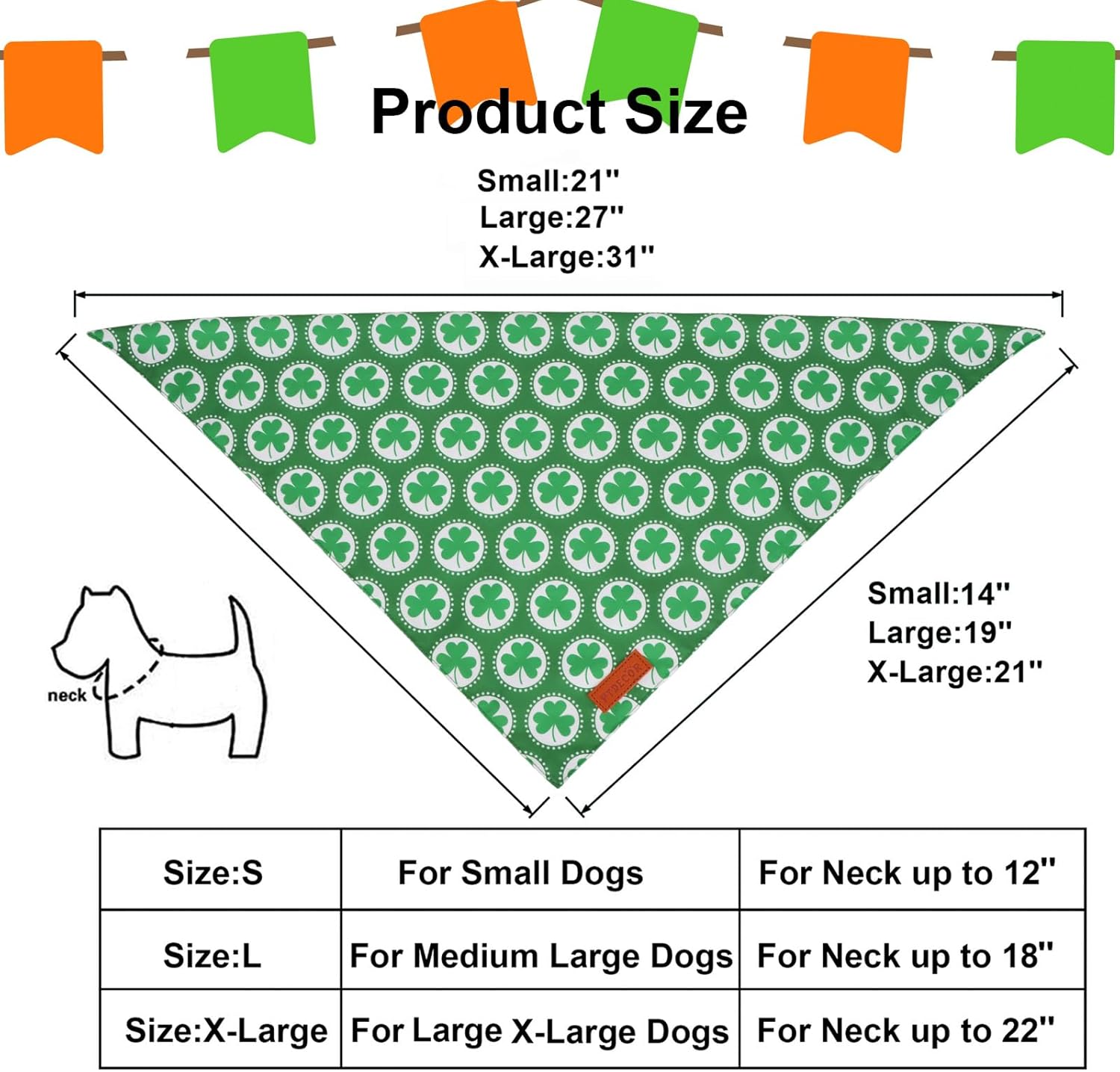 • 2 Pack Dog Bandanas: One package has two different style dog lrish bandanas. Both bandanas were full of festival atmosphere, super cute and loved both by your boy and girl! Whether the character of your dog is lively or quiet, these bandanas will fit them all!