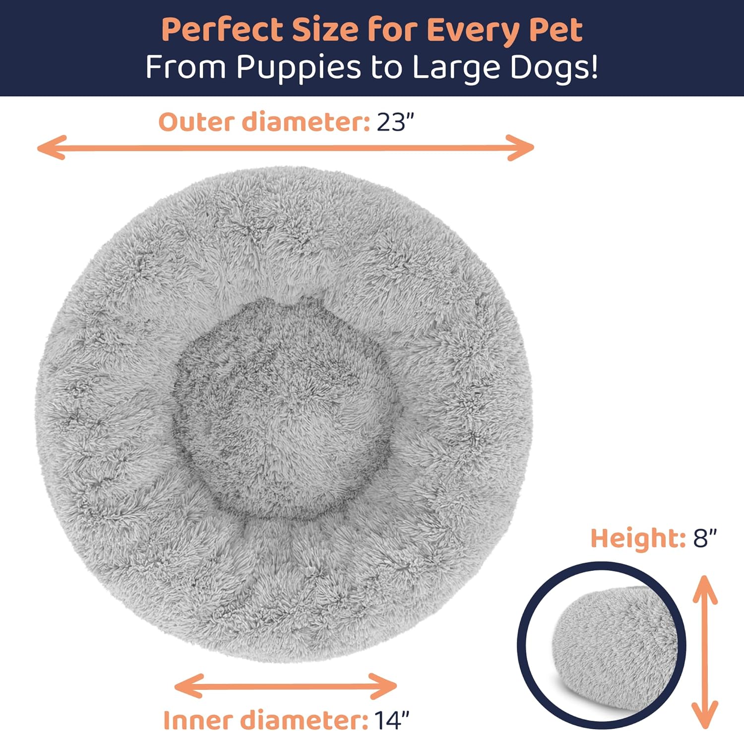 Donut Dog Bed - Premium Comfort for Anxiety Relief - Fluffy & Calming Design with Ultra-Plush Support | Cozy Round Dog Bed with Super Soft Circle Style (Size S Grey)