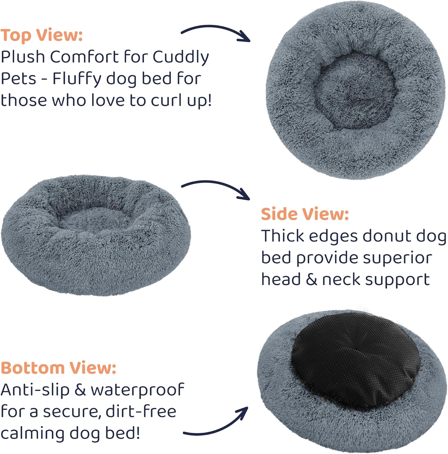 Donut Dog Bed - Premium Comfort for Anxiety Relief - Fluffy & Calming Design with Ultra-Plush Support | Cozy Round Dog Bed with Super Soft Circle Style (Size M Dark Grey)