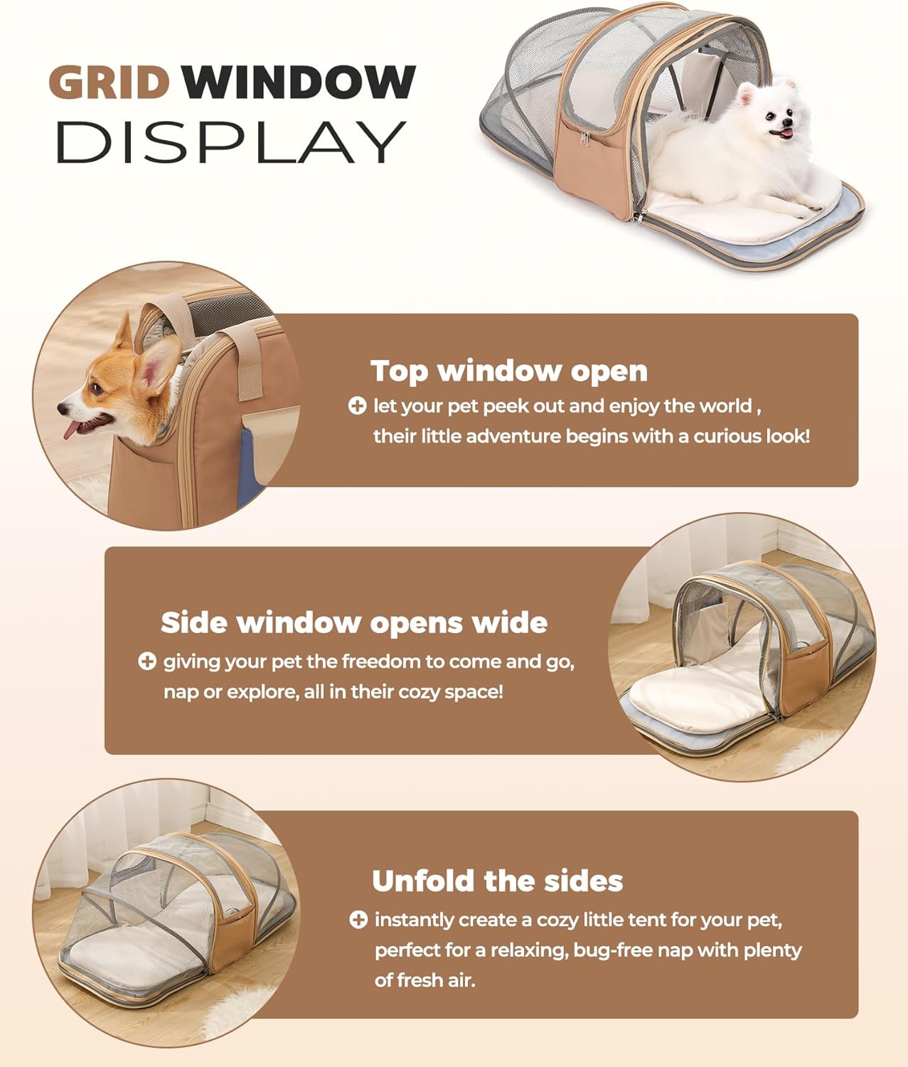 • Suitable for Small to Medium-Sized Pets: Designed for cats (e.g., Siamese, Ragdoll) and small dogs (e.g., Chihuahuas, Shih Tzus) under 25 lbs. The 32" expanded space ensures comfort for pets up to 12" tall, perfect for long trips or vet visits.