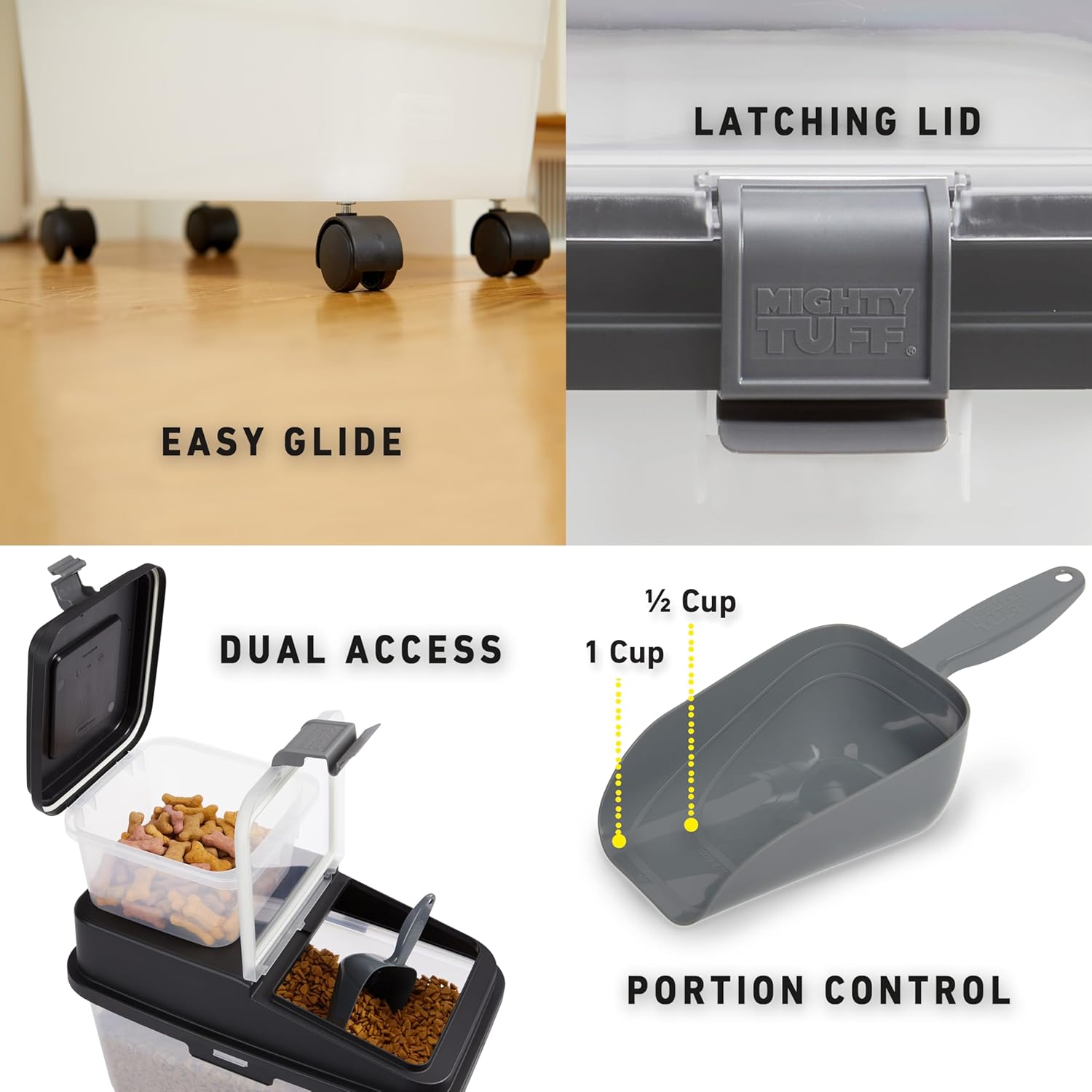Mighty Tuff 3 Piece Airtight Dog Food Storage Container, Up to 36 lbs, with 5 lbs Dog Treat Container and Portion Scoop – BPA Free Airtight Pet Food Bin on Wheels