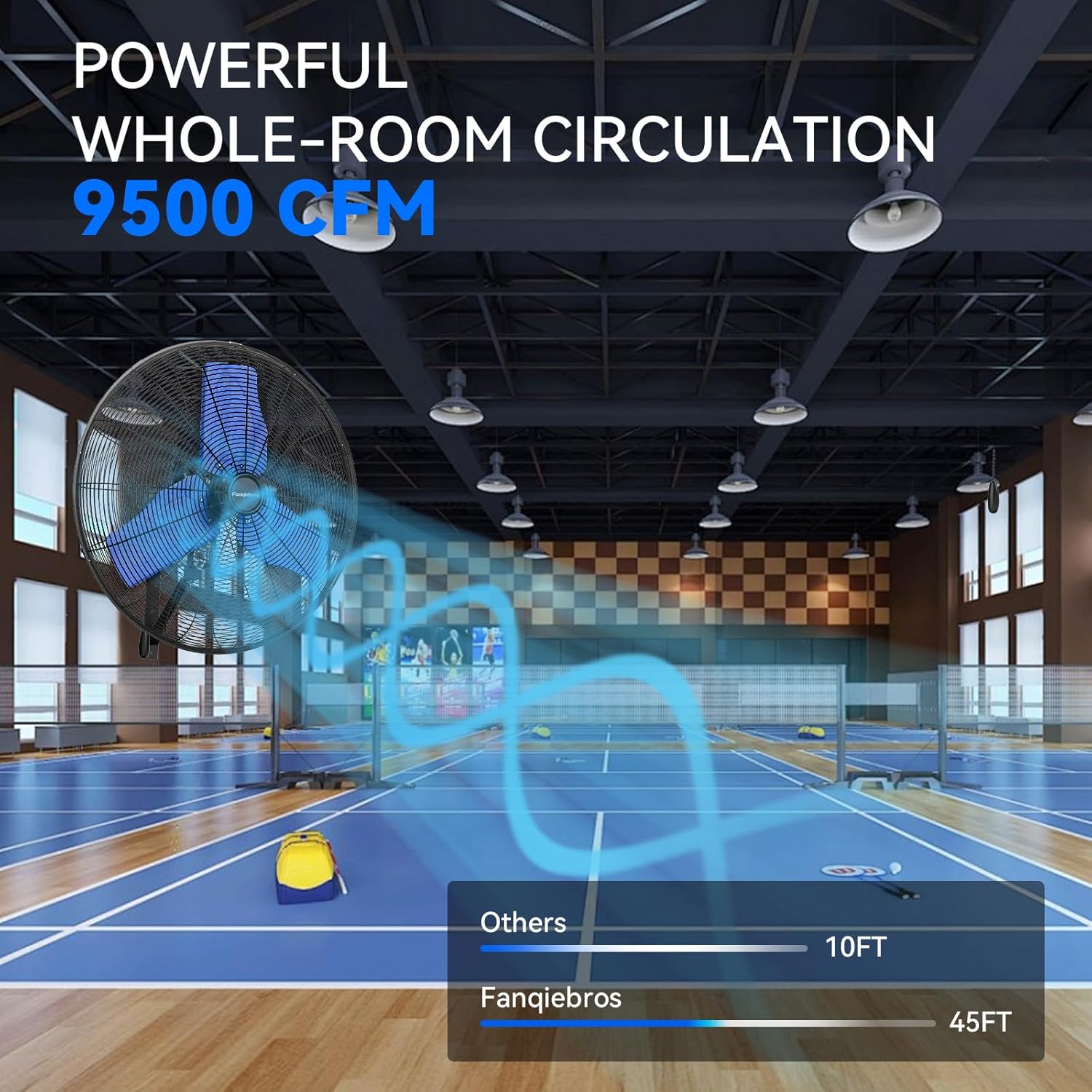 • š‹šØš°-ššØš¢š¬šž šƒšžš¬š¢š š§ - The heavy-duty wall fan operates at a high speed of 9500 CFM with a noise level of only 65dB, which is lower than the industry standard, creating a quieter gathering or working environment