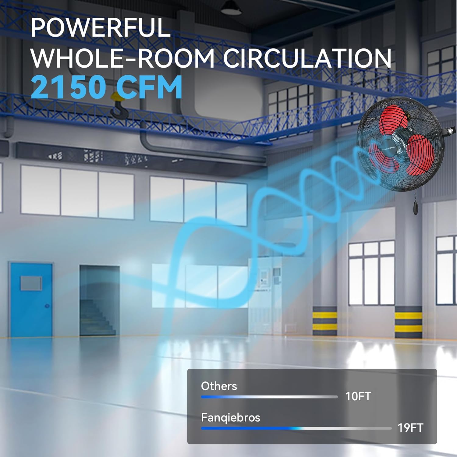 • š‡š¢š š” š•šžš„šØšœš¢š­š² š€š¢š« š…š„šØš° - Equipped with 3 adjustable wind speeds, low (1700CFM), medium (2100CFM) and high (2500 CFM), this wall fan utilizes the raw power of the pure copper motor to provide hurricane-like airflow to meet your garages, shops, covered patios, or anywhere else you need