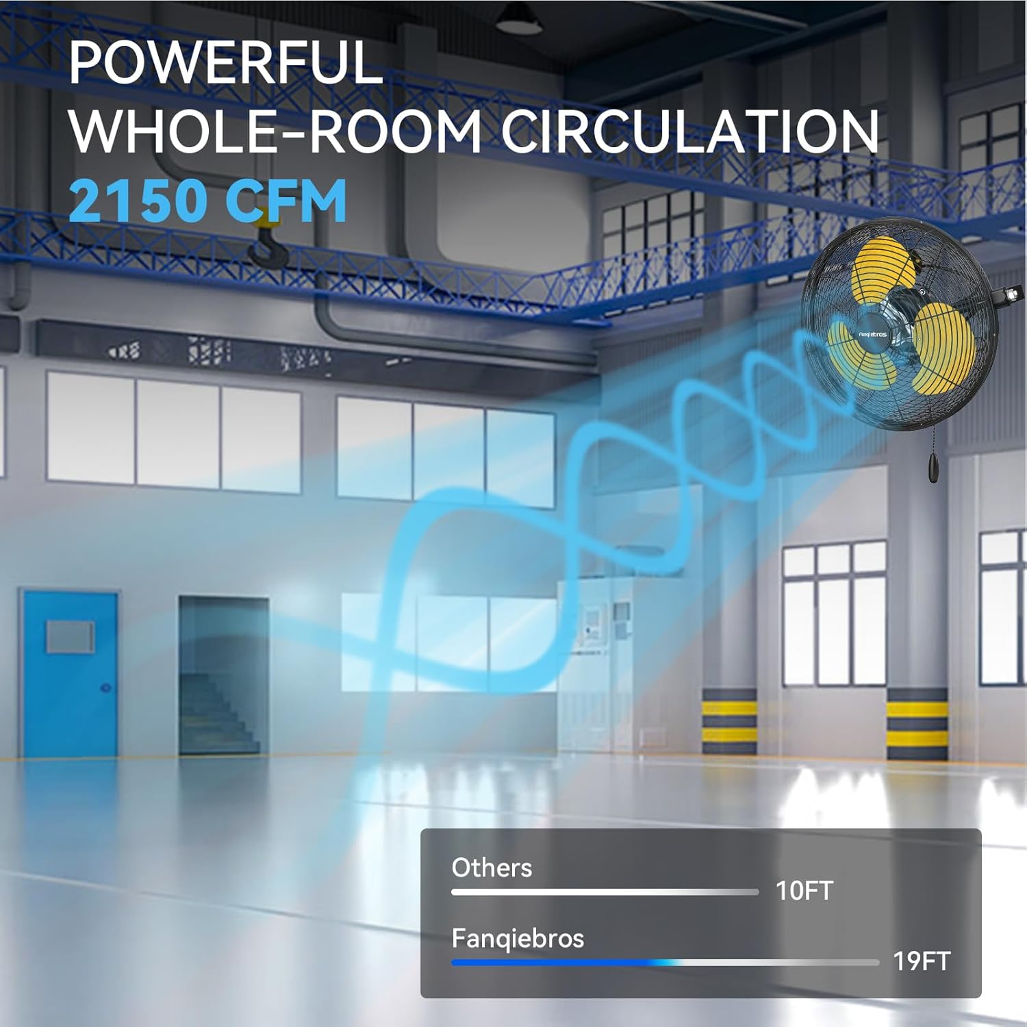 - šš¢š š” ššš„šØšš¢šš² šš¢š« š š„šØš° - Equipped with 3 adjustable wind speeds, low (1700CFM), medium (2100CFM) and high (2500 CFM), this wall fan utilizes the raw power of the pure copper motor to provide hurricane-like airflow to meet your garages, shops, covered patios, or anywhere else you need