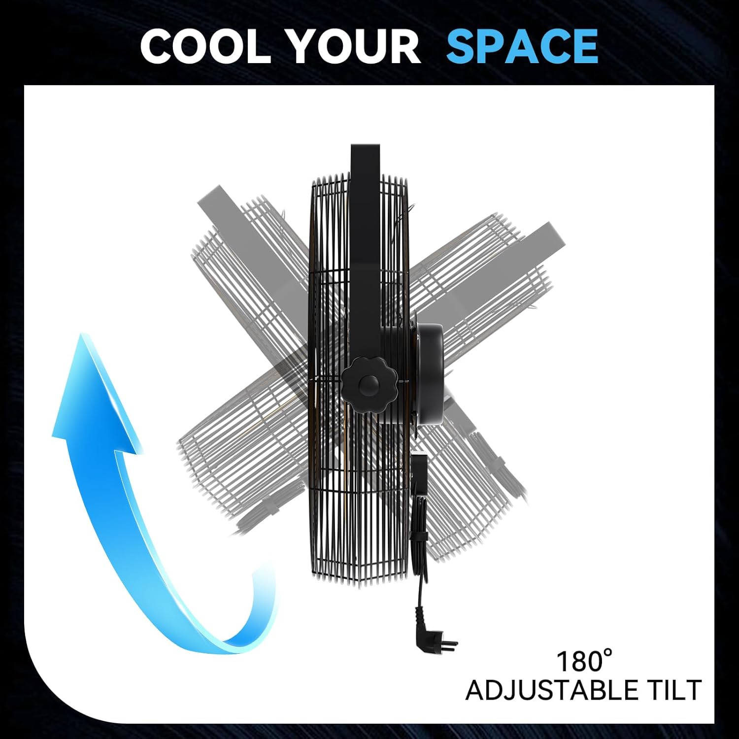 • š‡š¢š š” š•šžš„šØšœš¢š­š² š€š¢š« š…š„šØš° - Equipped with 3 adjustable wind speeds, low (2100CFM), medium (2300CFM) and high (2600 CFM), this wall fan utilizes the raw power of the pure copper motor to provide hurricane-like airflow to perfect for outdoor patio, garage, warehouse, humidity environments, dust