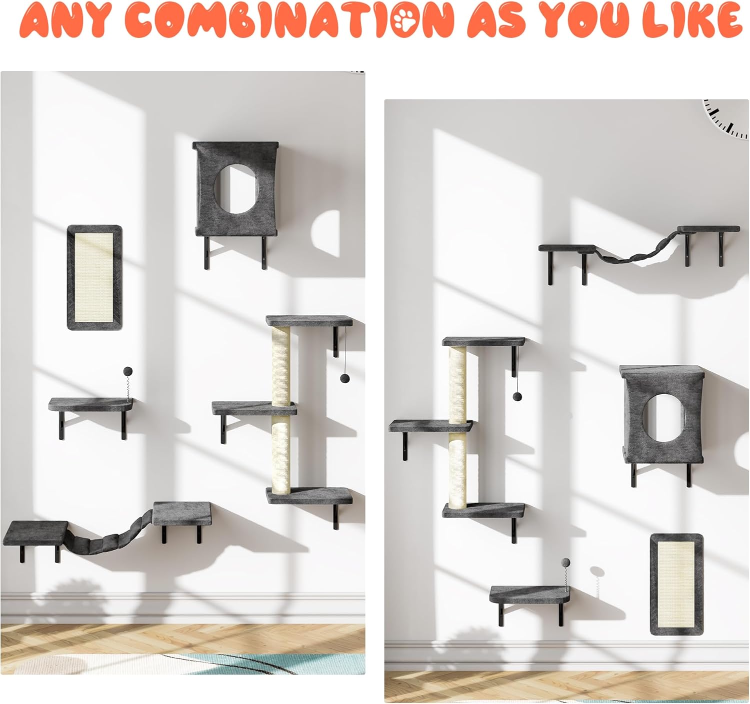 • 【DIY ADJUSTMENT, EASY TO INSTALL】Cat rack kit with screws for mounting. Detailed instructions are included in the package, easy to install with just an electric drill! You can rearrange the combination according to the space requirements, adjust to the height suitable for cat jumping. Beautiful and practical, adapting to various furniture environments.