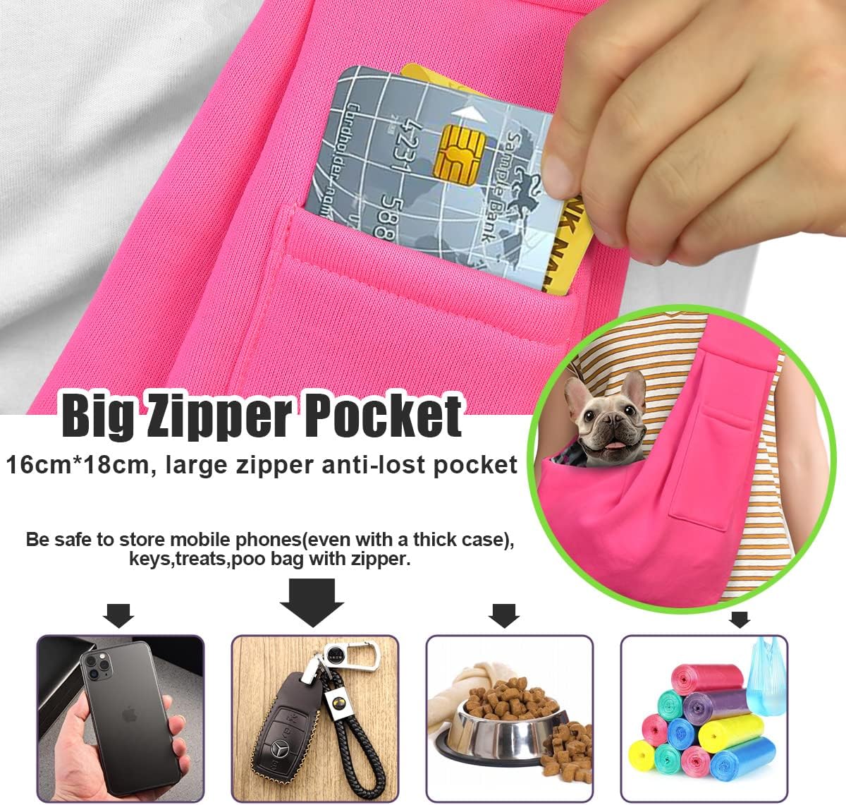 - Large-capacity classic pockets to store things: TOMKAS has a big pocket WITHOUT zipper on the front that can help you store your keys, cards, poop bag, wallet, some treats and even a dog leash; other dog slings without zippered pockets, It is easy to cause items to fall out during use. Especially the mobile phone, once it falls out, it will waste a lot of money. It is important to buy a reliable TOMKAS small dog carrier with a zippered pocket.