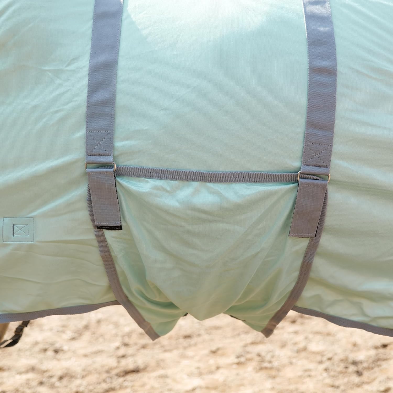 Horse Fly Sheet with Detachable Neck Cover & Belly Wrap, Adjustable Fly Sheet for Horses, Ventilated Airflow Mesh Equine Cooling Summer Flysheet Green 72