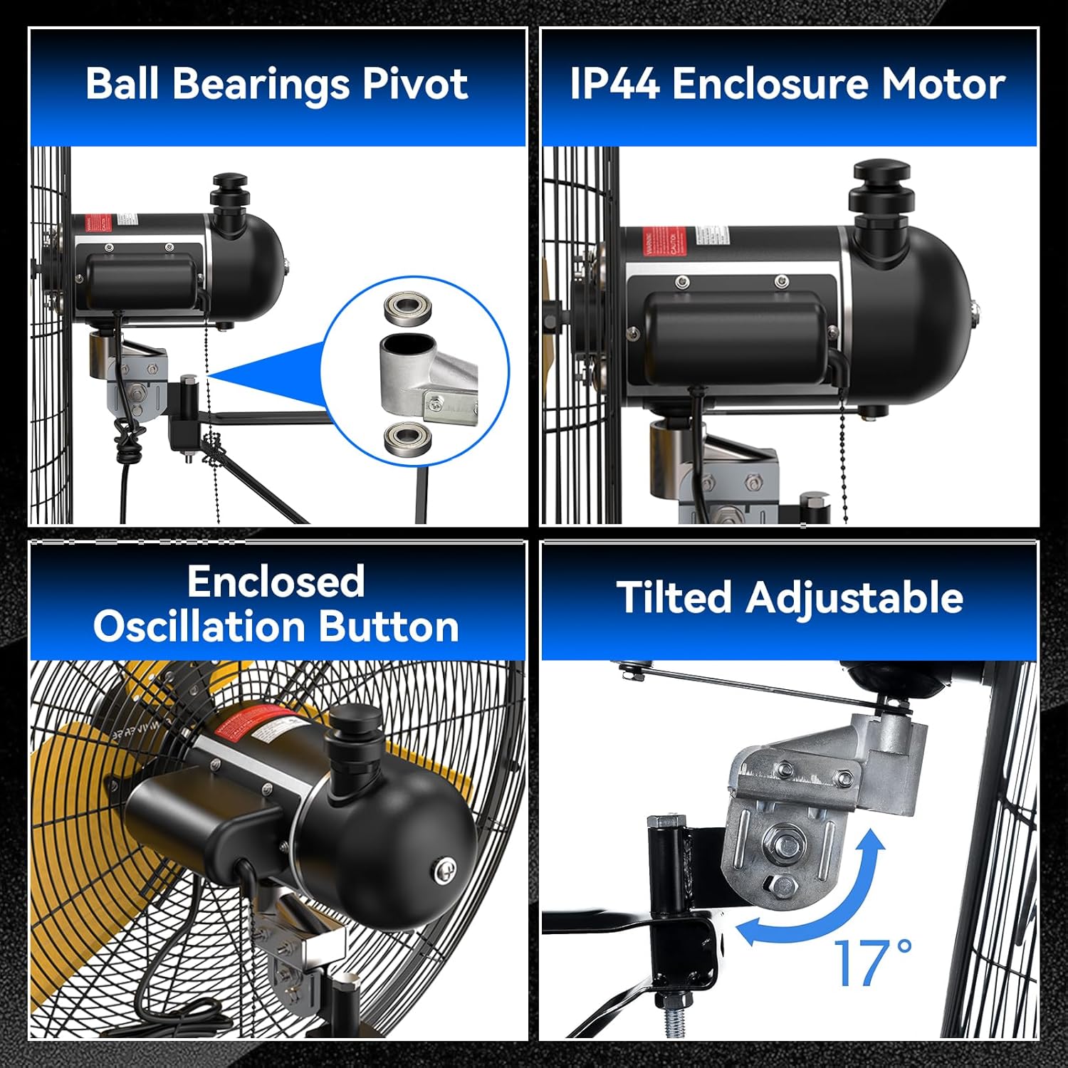 - šš®šššØšØš« šš¬šš¢š„š„ššš¢š§š š šš§ - The heavy-duty industrial fan is fully sealed, making it ideal for humid environments, dusty, rainy environments. It is equipped with permanently lubricated ball bearings to reduce maintenance requirements and ensure long-term smooth operation. The 6-foot power cord and +GFCI plug make outdoor