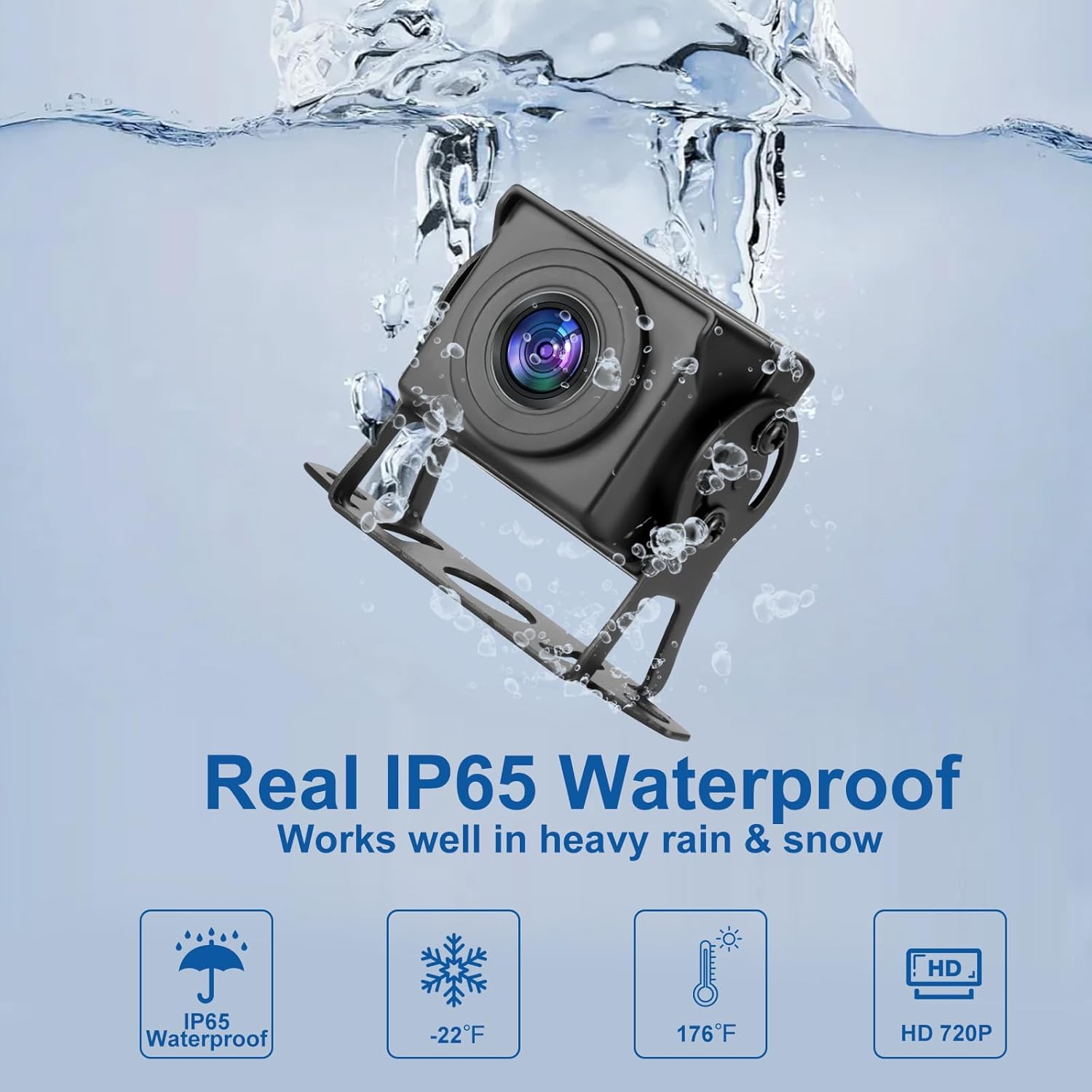 - 7" HD 1080P Backup Camera: The 7inch monitor uses advanced optics and superior image processing technology, can offers Pixel Resolution of 1920*1080, 100% true color reproduction, No more annoying blurry discoloration screen and picture, 7inch truck backup camera help you see blind area where your eyes can't reach, and displays the most ideal road condition.