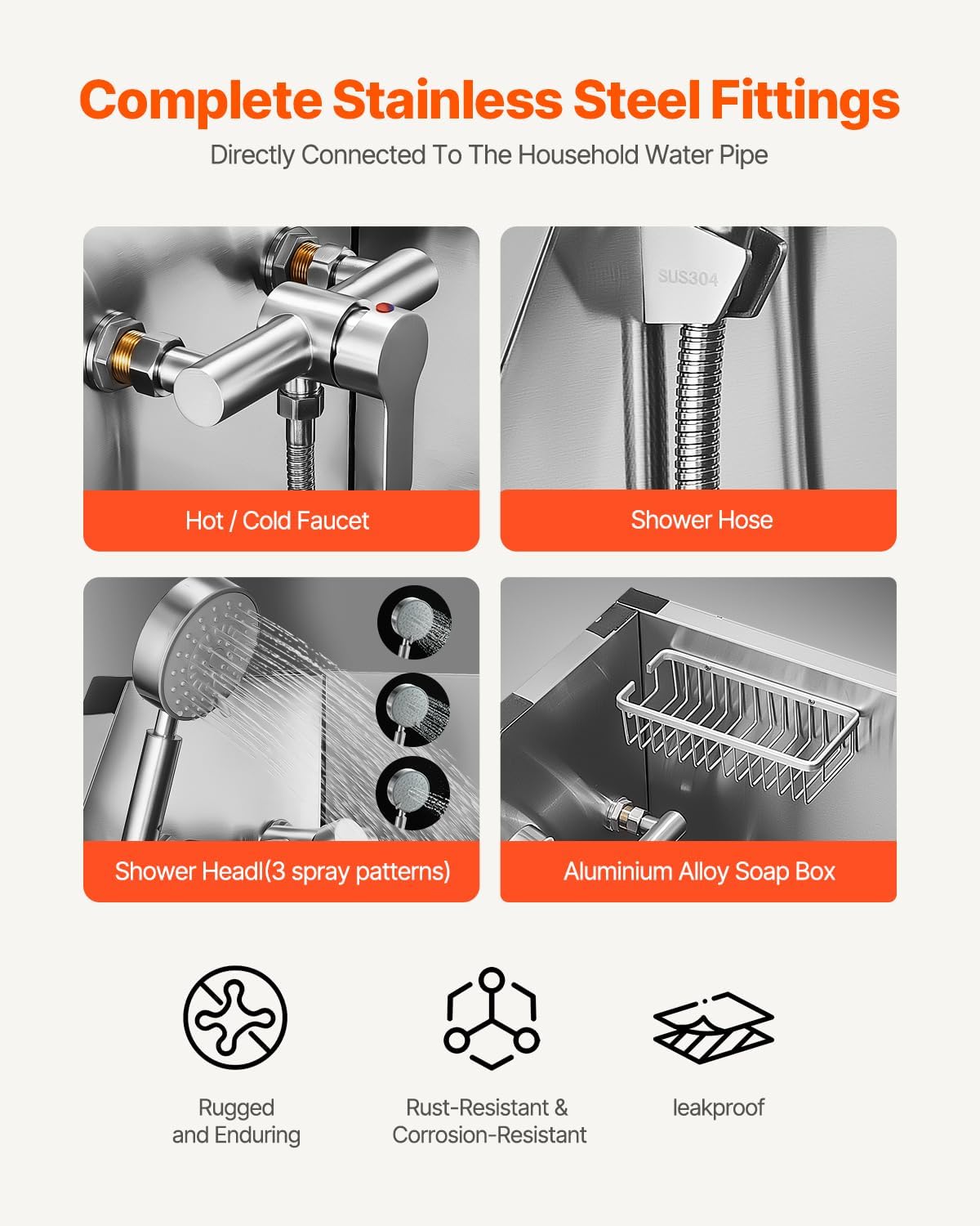 - More Comfortable Grooming: The hot and cold dual-control faucets and three water pressure settings provide versatility. The aluminum alloy soap holder keeps cleaning supplies handy, making pet grooming more convenient