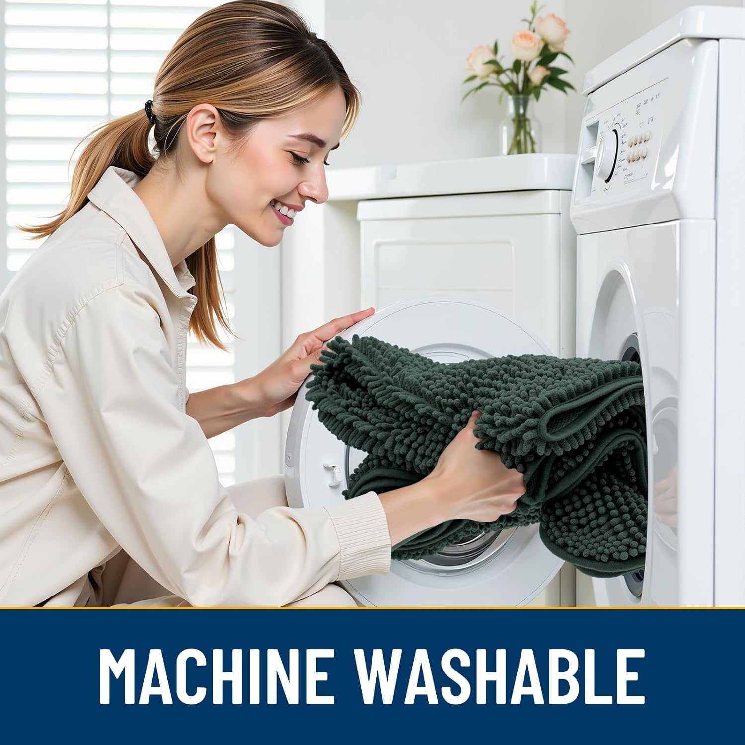 Smiry Dog Door Mat for Muddy Paws 36x24, Absorbs Moisture and Dirt Doormat, Non-Slip Washable Quick Dry Chenille Front Door Mat Indoor Entrance, Entryway Carpet for Inside Floor, Green