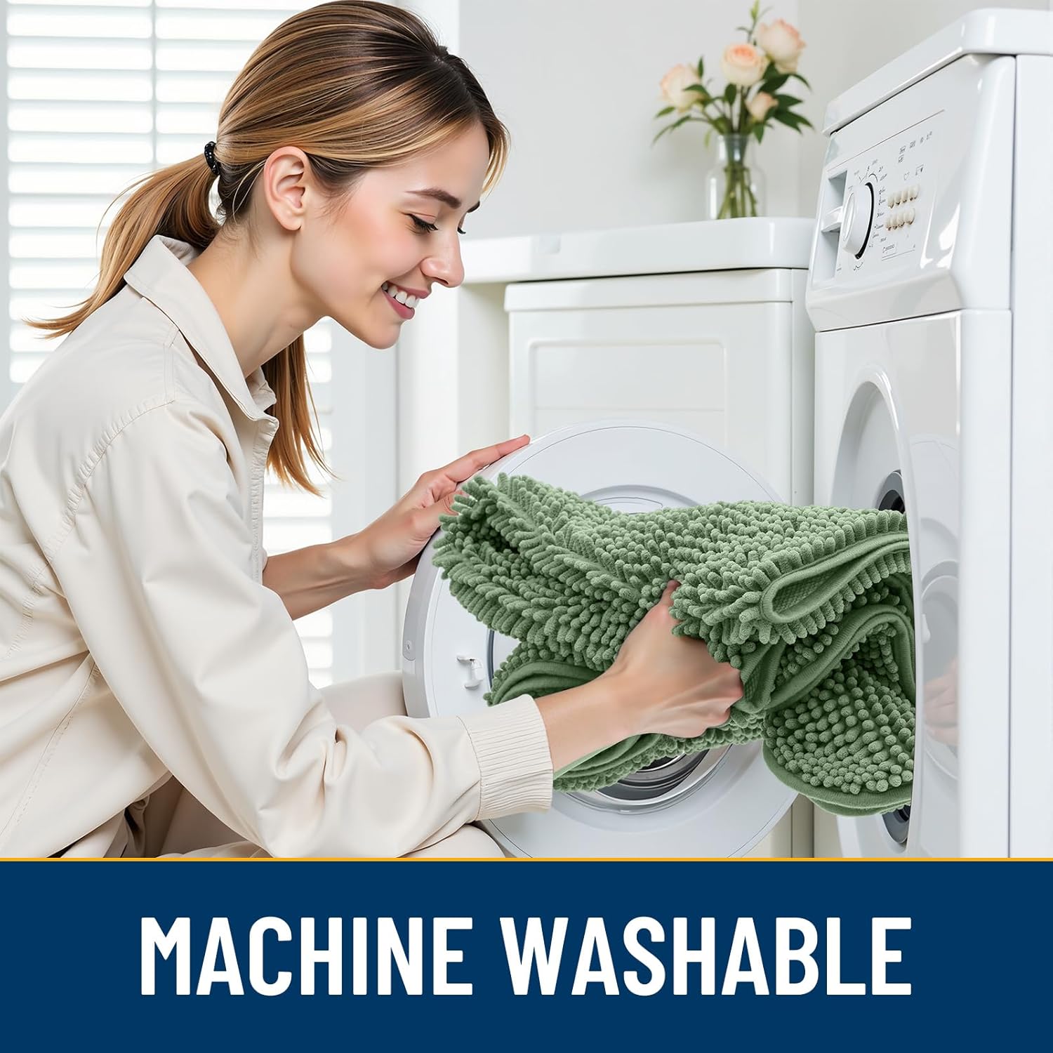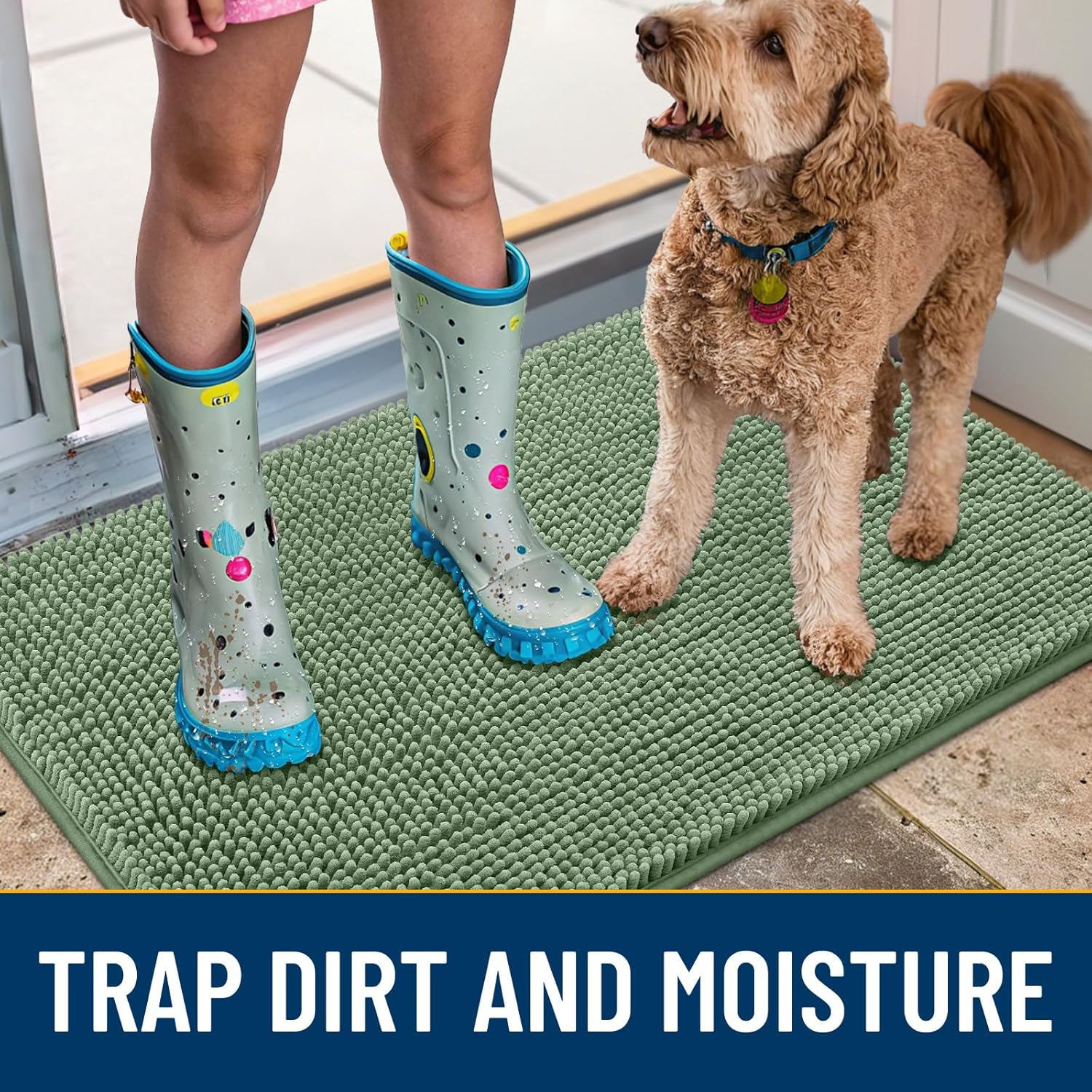 Smiry Dog Door Mat for Muddy Paws 48x30, Absorbs Moisture and Dirt Doormat, Non-Slip Washable Quick Dry Chenille Front Door Mat Indoor Entrance, Entryway Carpet for Inside Floor, Olive Green