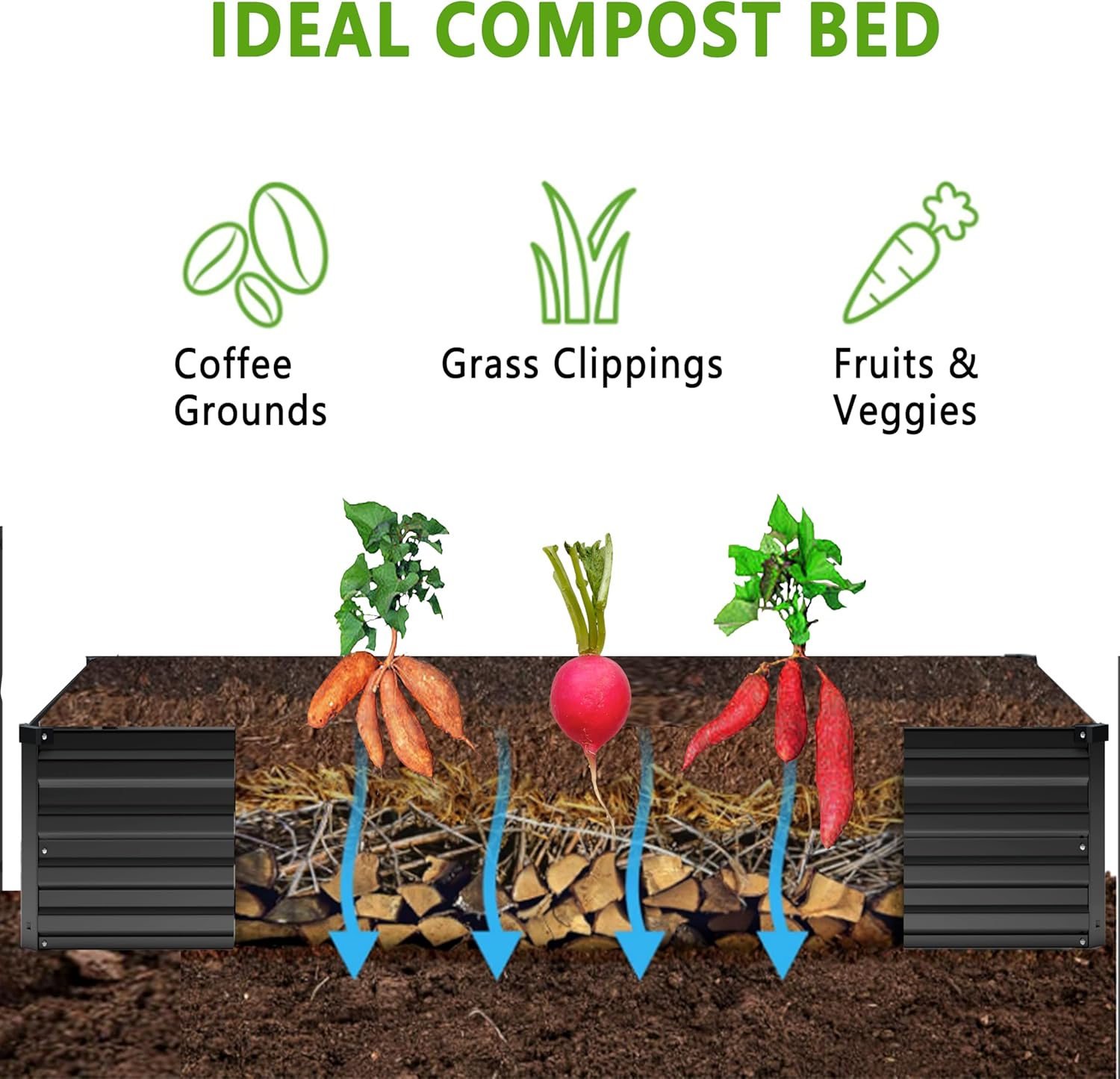 - SAFETY: Environmental protection coating will not pollute the soil,so plantswill be safer and healthier,and the part where the garden bed is built has acertain thickness and will not cut into hands