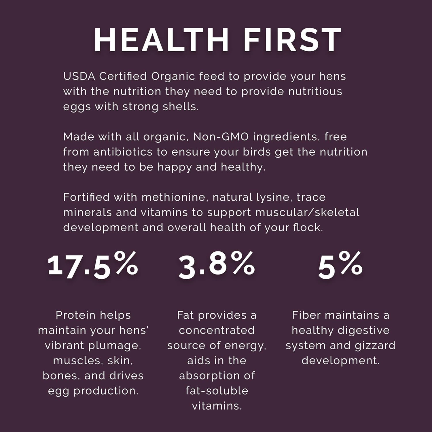 Layer Pellet Feed, 25lbs - Non-GMO, High-Protein Poultry Feed for Healthy Hens & Nutritious Eggs, 17.5% Protein - USDA Certified Organic Blend, Soy & Corn-Free