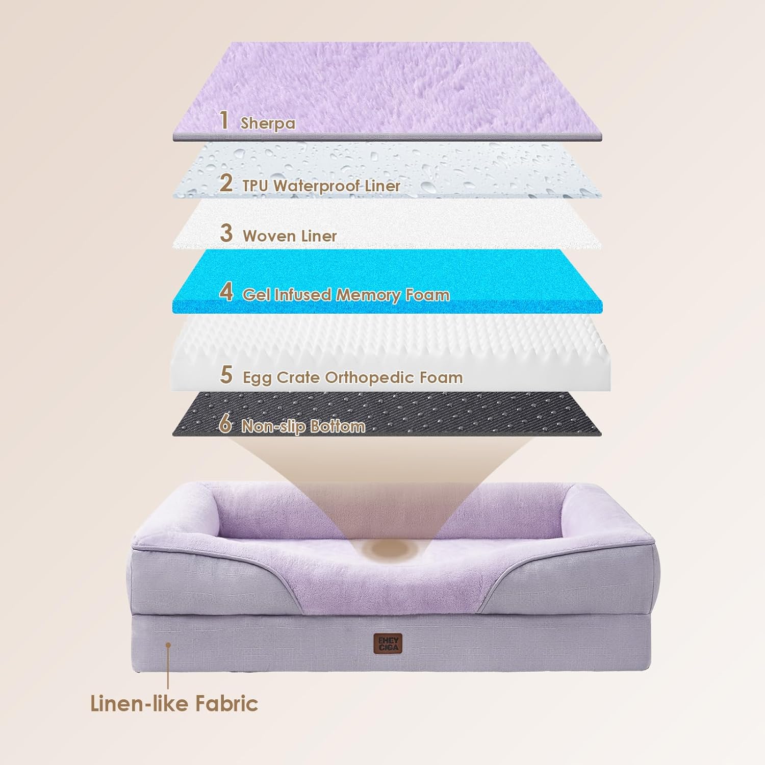 • WATERPROOF PROTECTION: A waterproof layer shields the plush fleece top from the sturdy base fabric, keeping the dog couch dry. Yet, the faux linen sides are not waterproof.