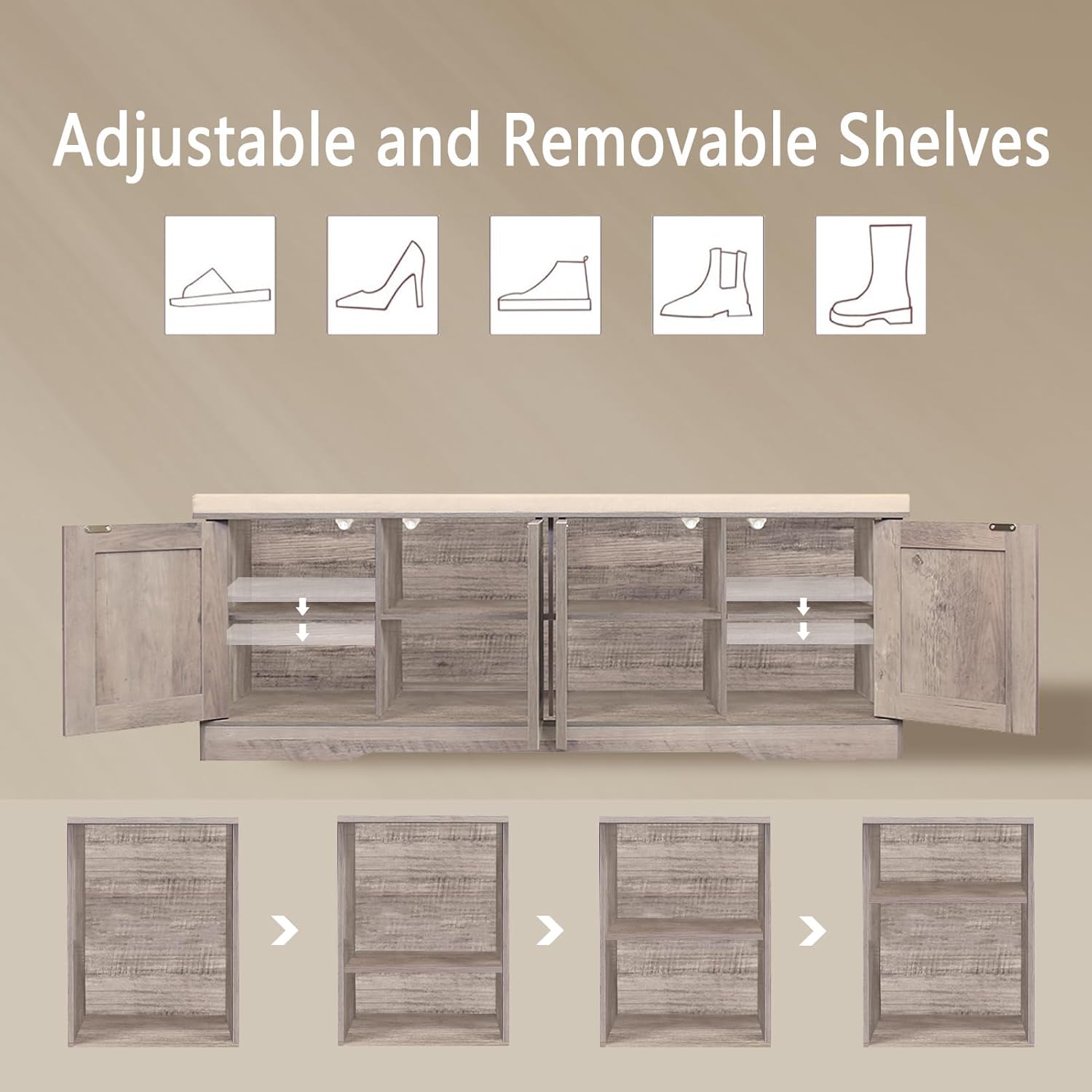 DINZI LVJ Shoe Bench, Entryway Storage Bench with Doors, Cushion, 2-Tier Shoe Rack with 8-Cubby, 47.2”L x 13.8”W Shoe Organizer Cabinet, Adjustable Shelf, Living Room, Bedroom, Greige