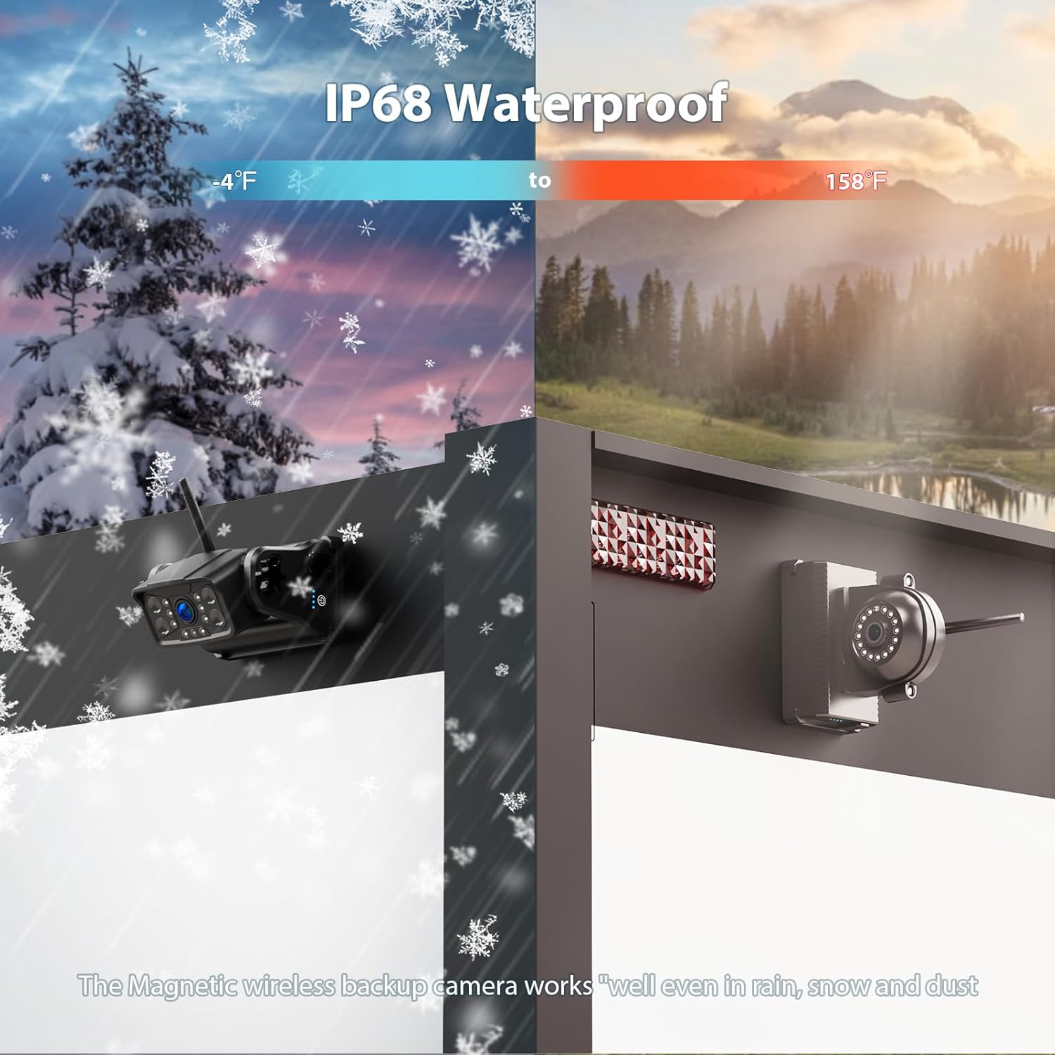 • ⚡Magnetic Wireless Rear/Side View Camera: This magnetic wireless backup camera system includes a 10" HD monitor and 2 magnetic rear view backup cameras and 2 magnetic side view backup cameras. With a strong magnetic base, this magnetic wireless backup camera system can be firmly attached to metal surface. If your vehicle is not built with a metal cover sheet, you will need to mount a highly magnetic metal plate so that the magnets on the camera are strong enough to hold.