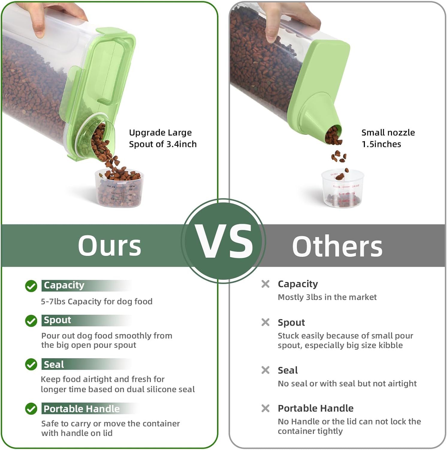 • WHAT YOU GET?:The small dog food bin comes with a 1-pack airtight pet food storage container with a clear measuring cup and an upgraded large spout for easy pouring of pet food at any time. This dog food storage containers can be a gift The perfect gift for any home.