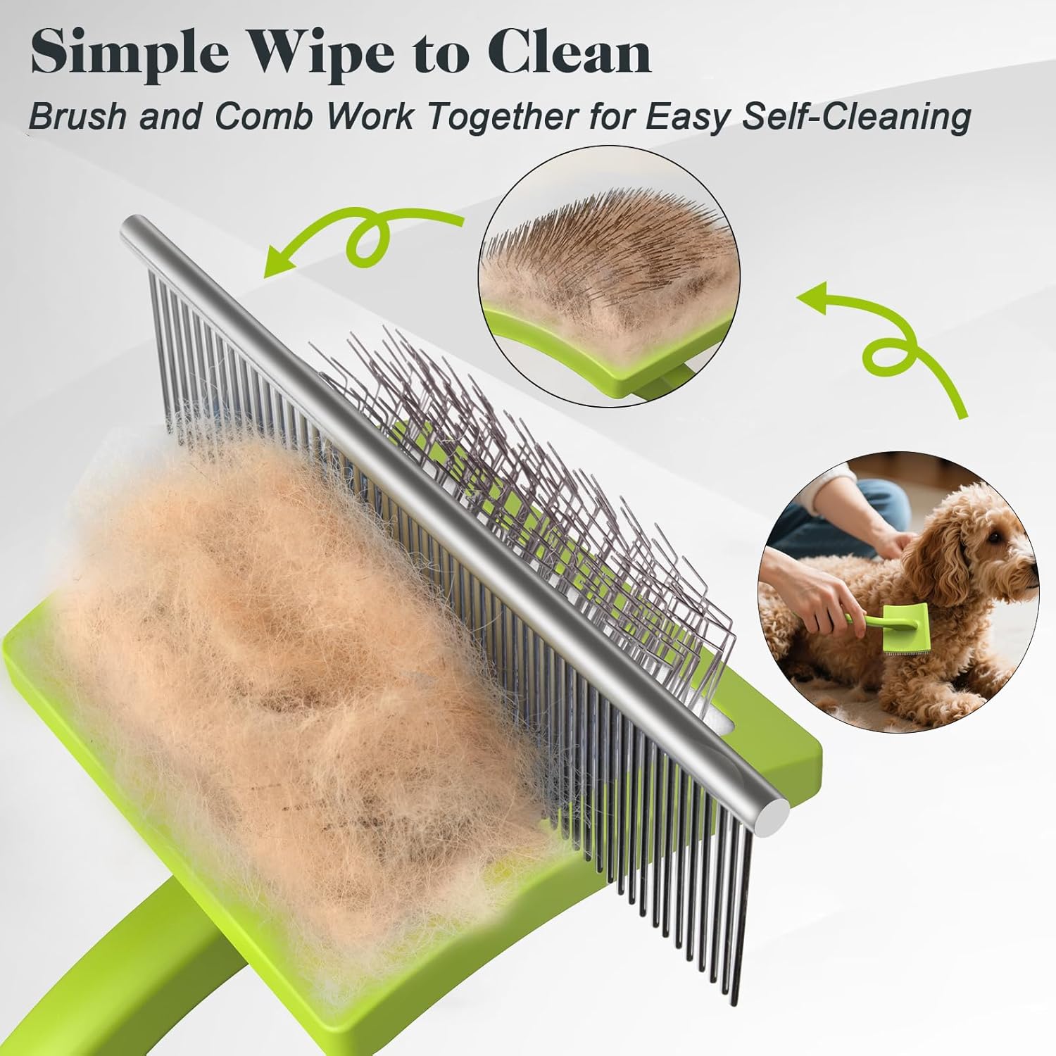 2PCS Slicker Brush for Dogs & Pet Comb,Professional Dog Grooming Brush (Goldendoodles,Poodles,Labradoodles) with Extra Long Pins to Effectively Remove Tangles, Knots and Mats (Green)