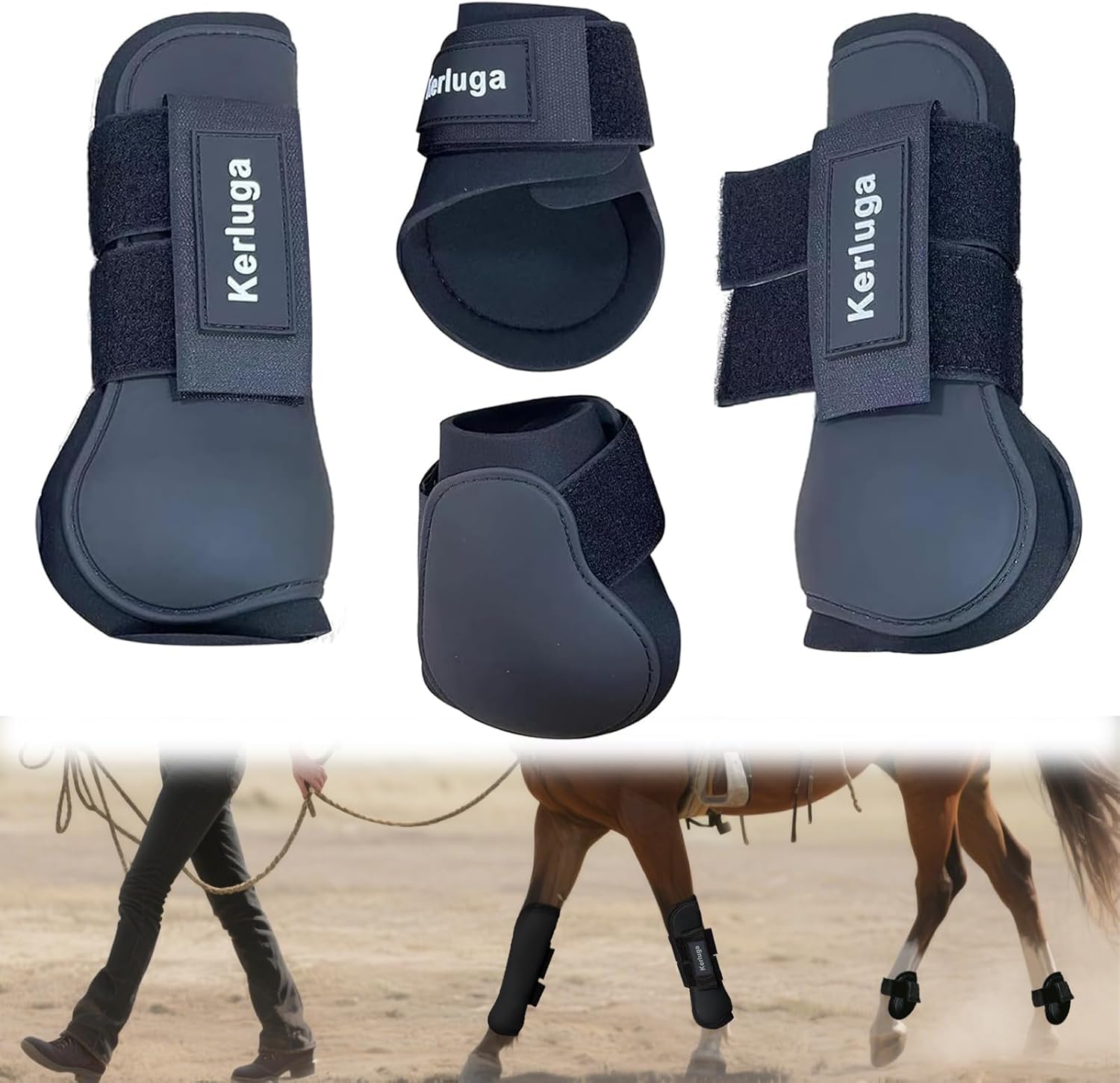 - SHOCK ABSORPTION & PROTECTION: The Professional Shock Absorbing Horse Boots are made of a highly durable PU shell and shock absorbing Neoprene, give horse extra tendon support and heavy-duty protection from his back hooves, keep their vulnerable tendons and ligaments well protected for a long time. Perfect for Horse Show Jumping Tendon Boots needs