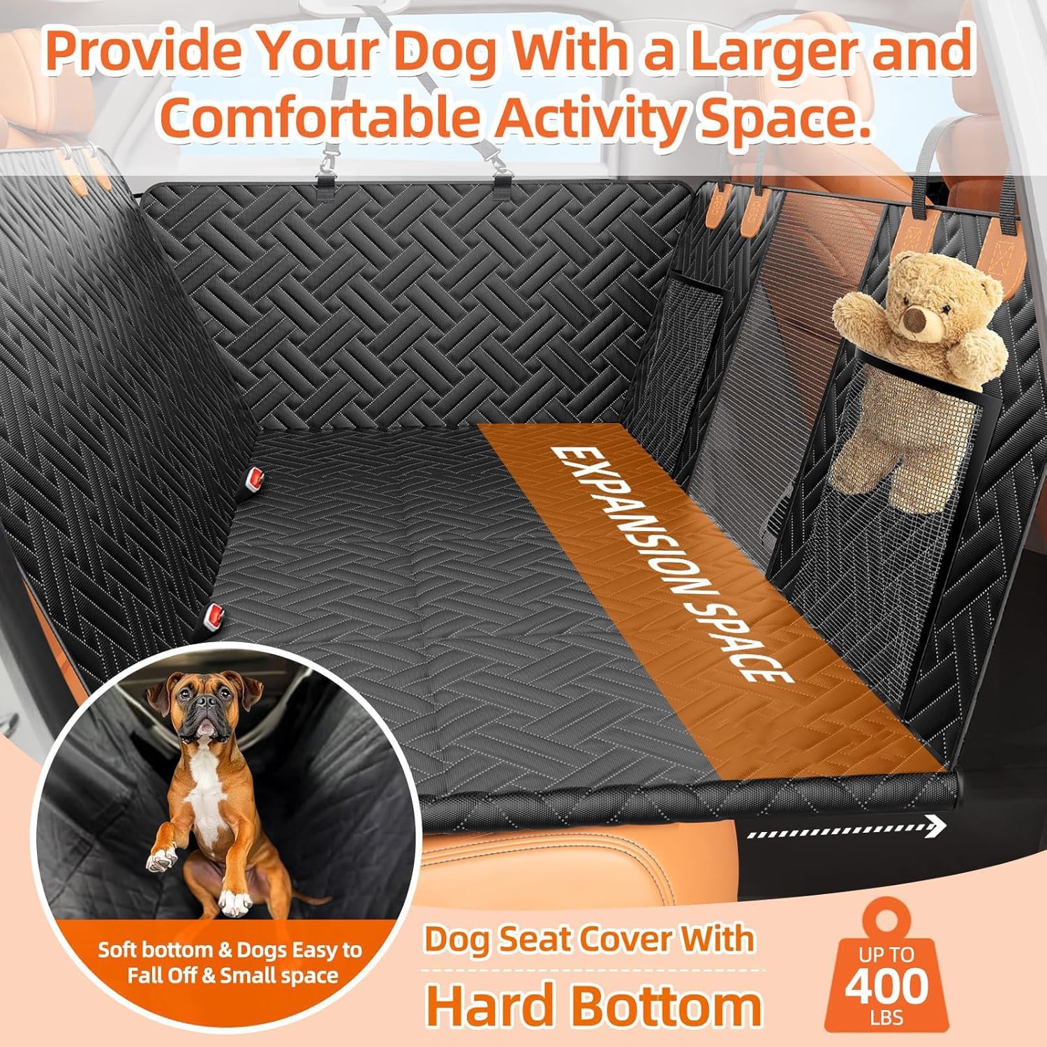 Back Seat Extender for Dogs,Dog Car Seat Cover for Back Seat,Hard Bottom Dog Bed for Car with Mesh Window,100% Waterproof and 600D Oxford Scratch-Resistant Backseat Car Seat for Cars Trucks and Suv