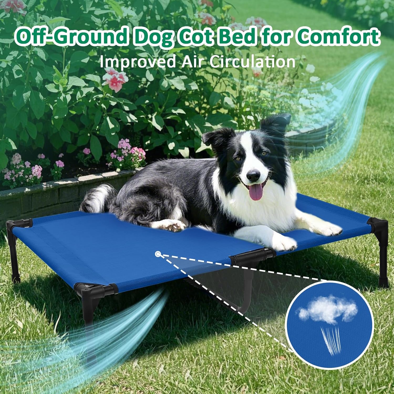 Outdoor Dog Beds Large Sized Dogs, Cooling Elevated Dog Bed with Breathable Mesh & Non Slip Feet, Raised Pet Bed Off The Ground, Lifted Place Cot (L, Blue)