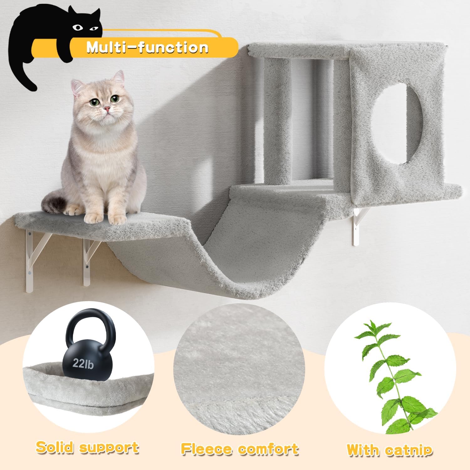 - EASY TO INSTALL - This wall mounted cat furniture comes with mounting accessories and installation instructions, allowing you to adjust the position and angle as desired. It simplifies the complexity of installation and increases stability, so you won't find it difficult to install, even if it's your first time.