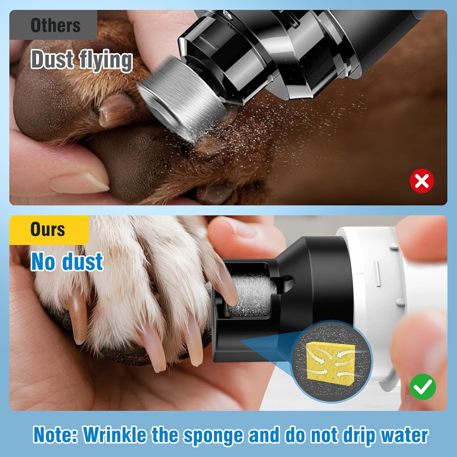 Dog Nail Grinder, 7-Speed Electric Dog Nail Trimmers with Dust-Absorbing Sponge & File for Small/Medium/Large Dogs & Cats, Rechargeable Dog Nail Clippers Grooming Kit Includes Storage Bag