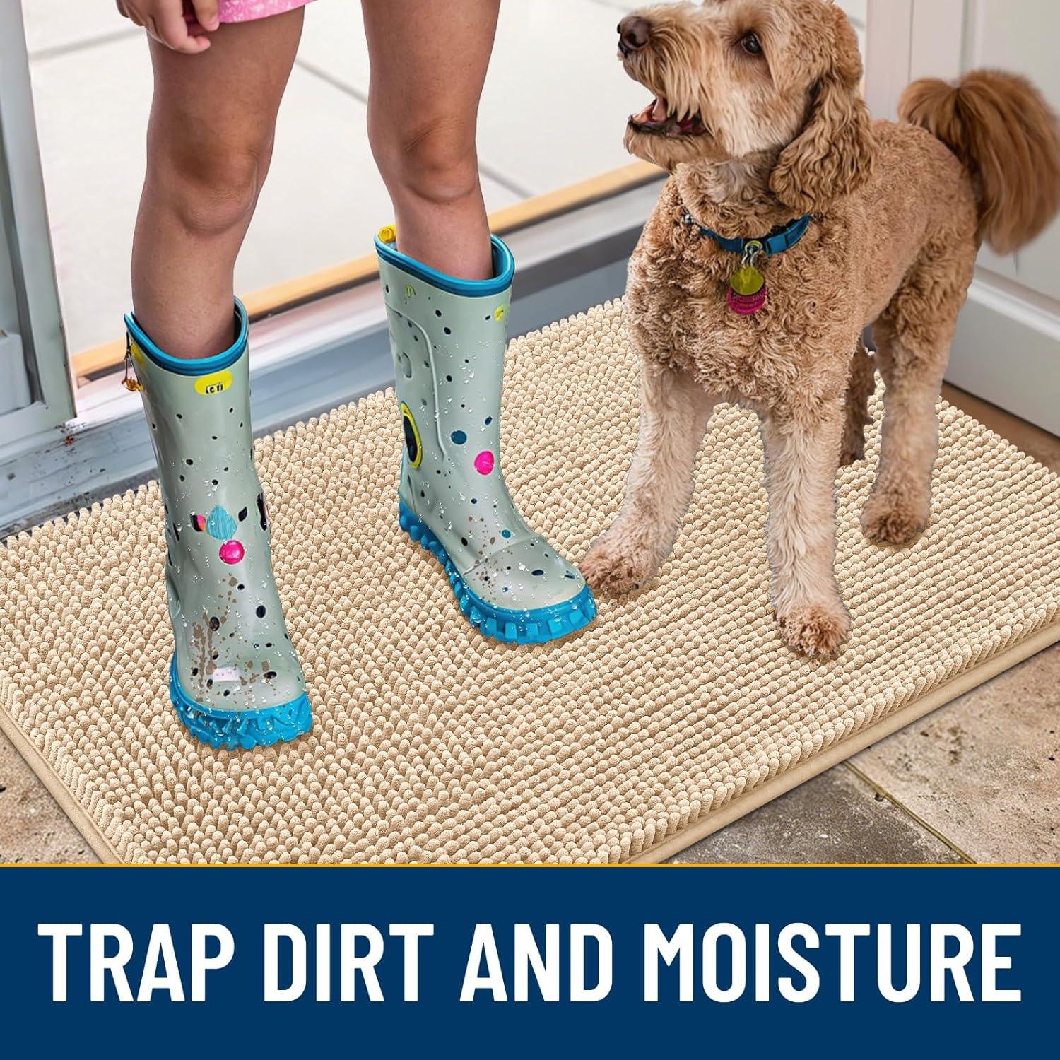 Smiry Dog Door Mat for Muddy Paws 40x24, Absorbs Moisture and Dirt Doormat, Non-Slip Washable Quick Dry Chenille Front Door Mat Indoor Entrance, Entryway Carpet for Inside Floor, Beige