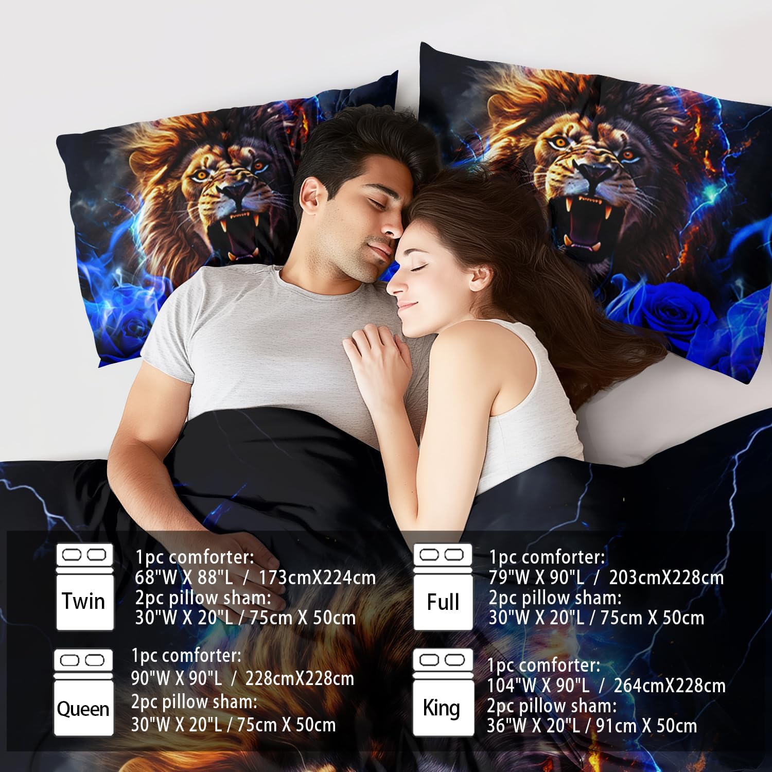 - Twin Size Fashion Lion Comforter Set :This bedding set includes 1 comforter(67" x 85") and 2 pillowcases(20”x30”). In order to facilitate transportation, the quilt is made of vacuum compression technology. It will be slightly wrinkled when taken apart, but it will quickly regain its fluffiness if you gently beat it.