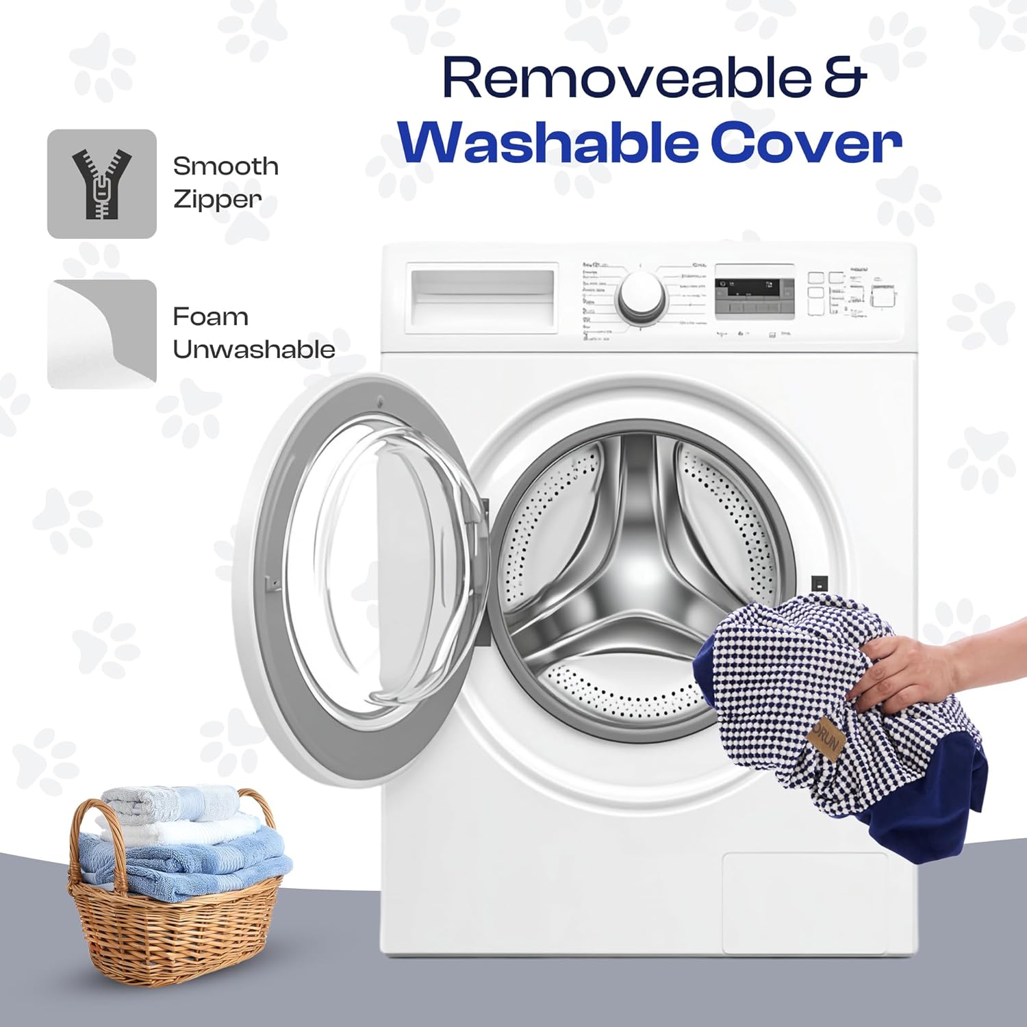 • Fully Washable Cover – Soft upholstery zip cover slips off for machine wash; breathable velvet tread grips paws even when wet.