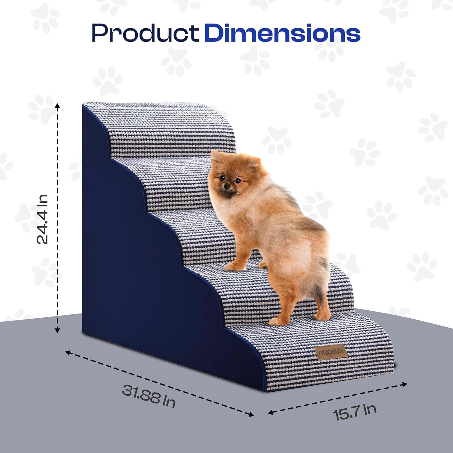 • Extra-Tall 24.5" Height – Reaches mattresses & couches that standard 22" 5-step stairs can’t, perfect for 26-30 inch high beds; lets dogs climb up instead of jumping.