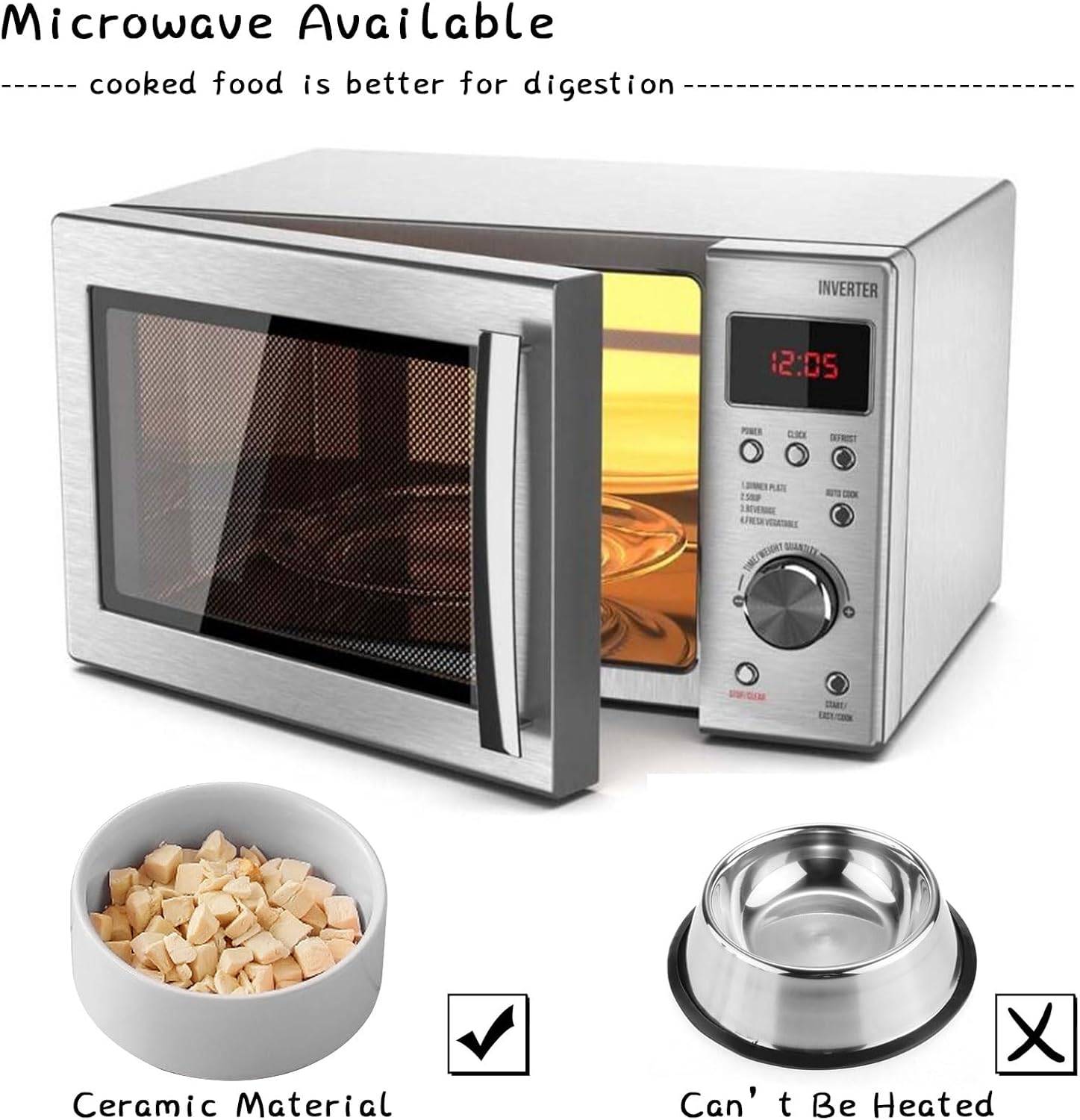 • Easy to Clean and Microwave Safe Ceramic Material - Cute ceramic dogs cats bowl with WOOD STAND design matches the home decorations. Ceramic bowl is made of Porcelain, this size cat dog food water bowls are free of lead and cadmium. High temperature ceramic, non-toxic harmless, no smell,durable.Clean sanitation, be helpful for pet health. conveniently dishwasher Microwave safe so this ceramic food bowl can be easily cleaned. No Fuss.