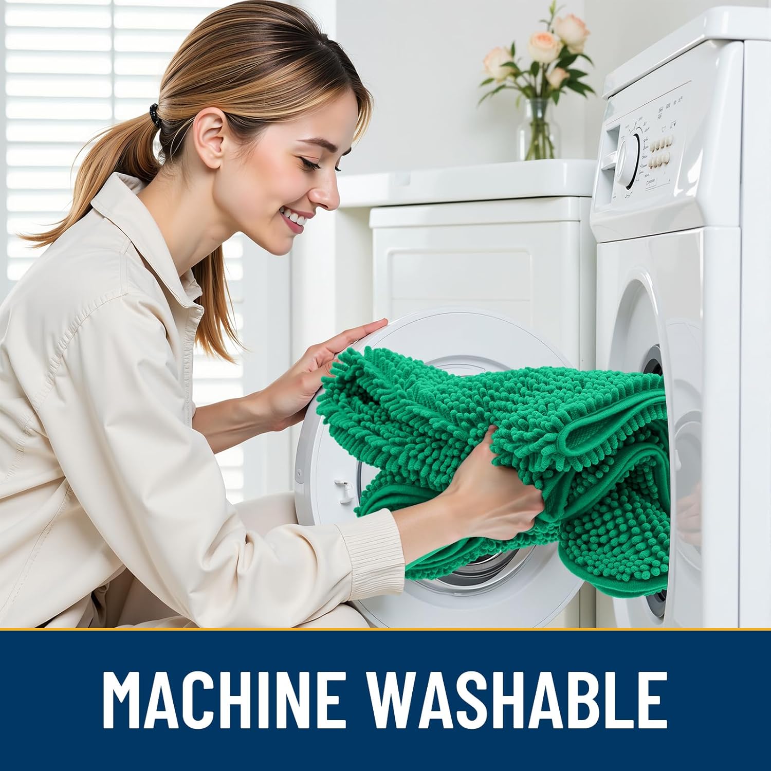 Smiry Dog Door Mat for Muddy Paws 36x24, Absorbs Moisture and Dirt Doormat, Non-Slip Washable Quick Dry Chenille Front Door Mat Indoor Entrance, Entryway Carpet for Inside Floor, Emerald Green