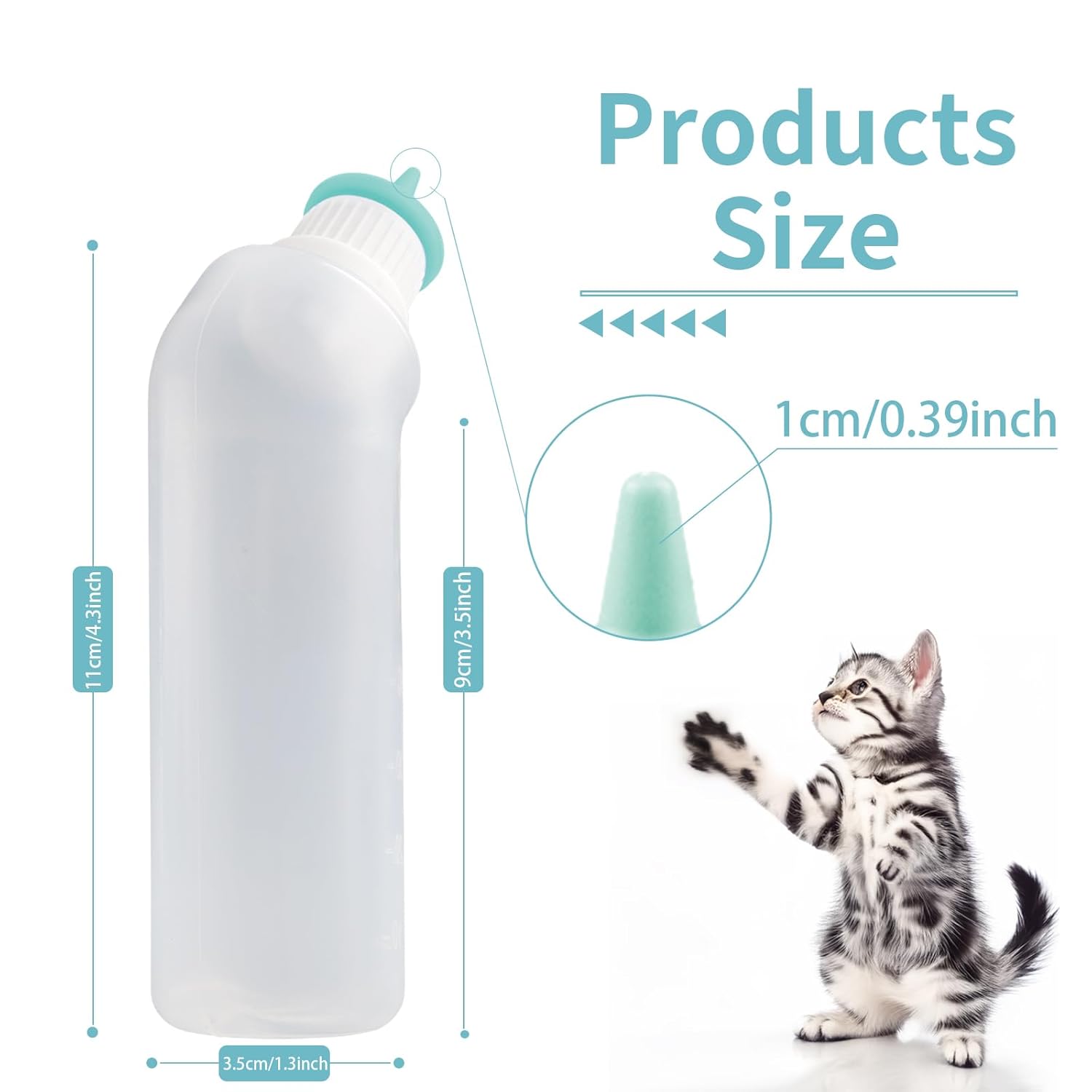 • 【Anti-Choking Design】:The curved neck of kitten bottle make easy to feeding puppy,kittens, and the style could facilitates a constant flow of milk into the teat, effectively reducing abdominal bloating from swallowing air while feeding.