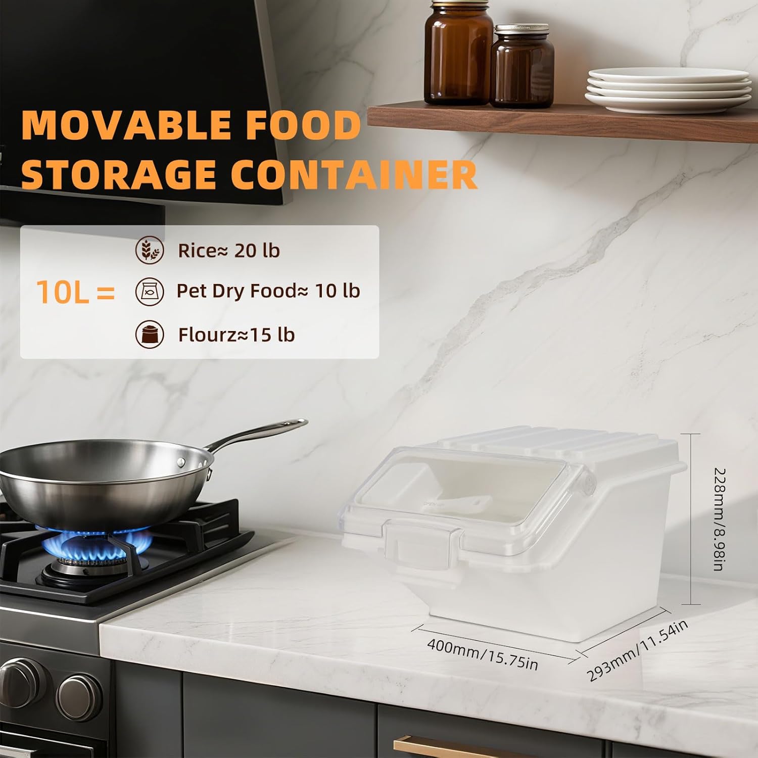 • 4. 【Tiered Capacity & Flexible Use】Available in 3 optimized sizes:10L (holds ~4.5kg / 10lb flour)24L (holds ~11kg / 24lb flour)47L (fits standard 25kg/55lb flour sacks*).Perfect for household pantries to commercial kitchens – scales seamlessly with your storage needs.